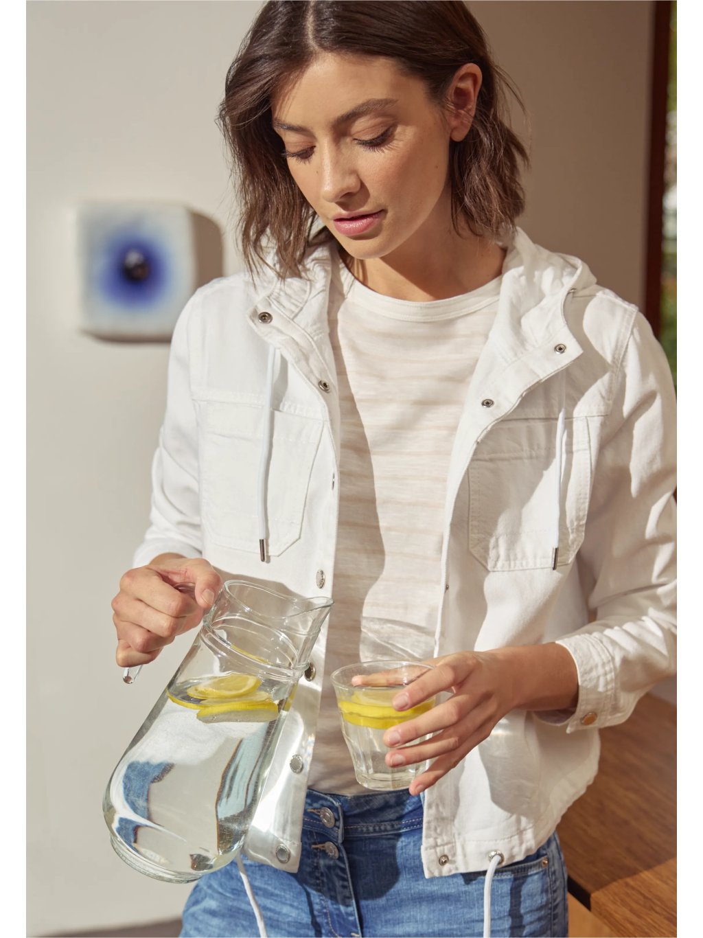Bunda se zapínáním vpředu působí uvolněně, ale zároveň upraveně, takže se hodí do města, do práce i na volný čas. Díky džínovému vzhledu se snadno kombinuje s kalhotami, šaty i sportovnějšími outfity a stane se oblíbenou součástí každodenního šatníku.