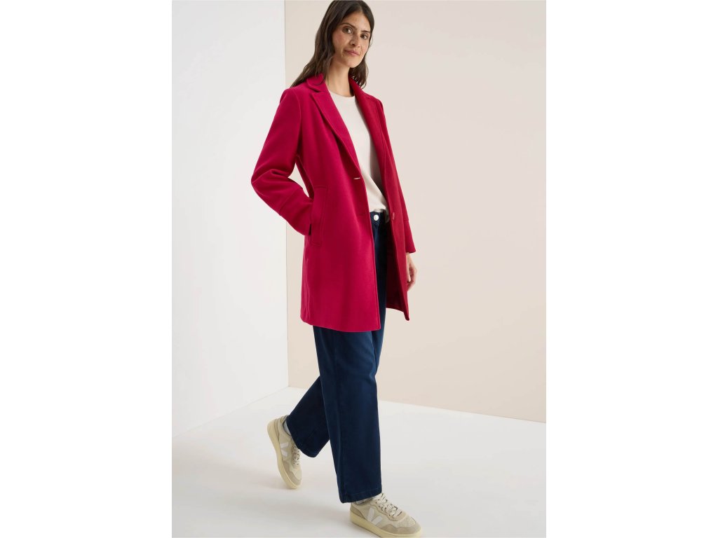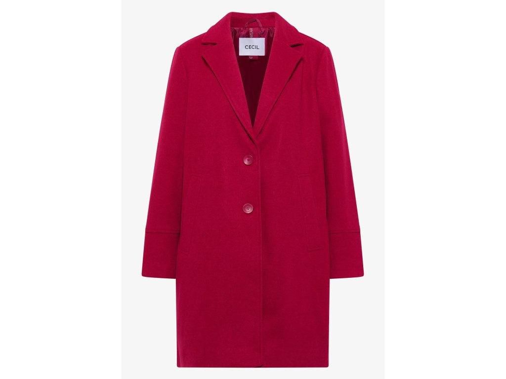 Elegantní dámský kabát CECIL zaujme moderní vlněnou optikou a stylovým revers límcem. Klasický design podtrhují dvě knoflíková zapínání, postranní kapsy a jemné dekorativní švy v tónu látky. Pohodlný střih a kvalitní zpracování dělají z tohoto kabátu ideální kousek pro vaši podzimní i zimní garderobu.