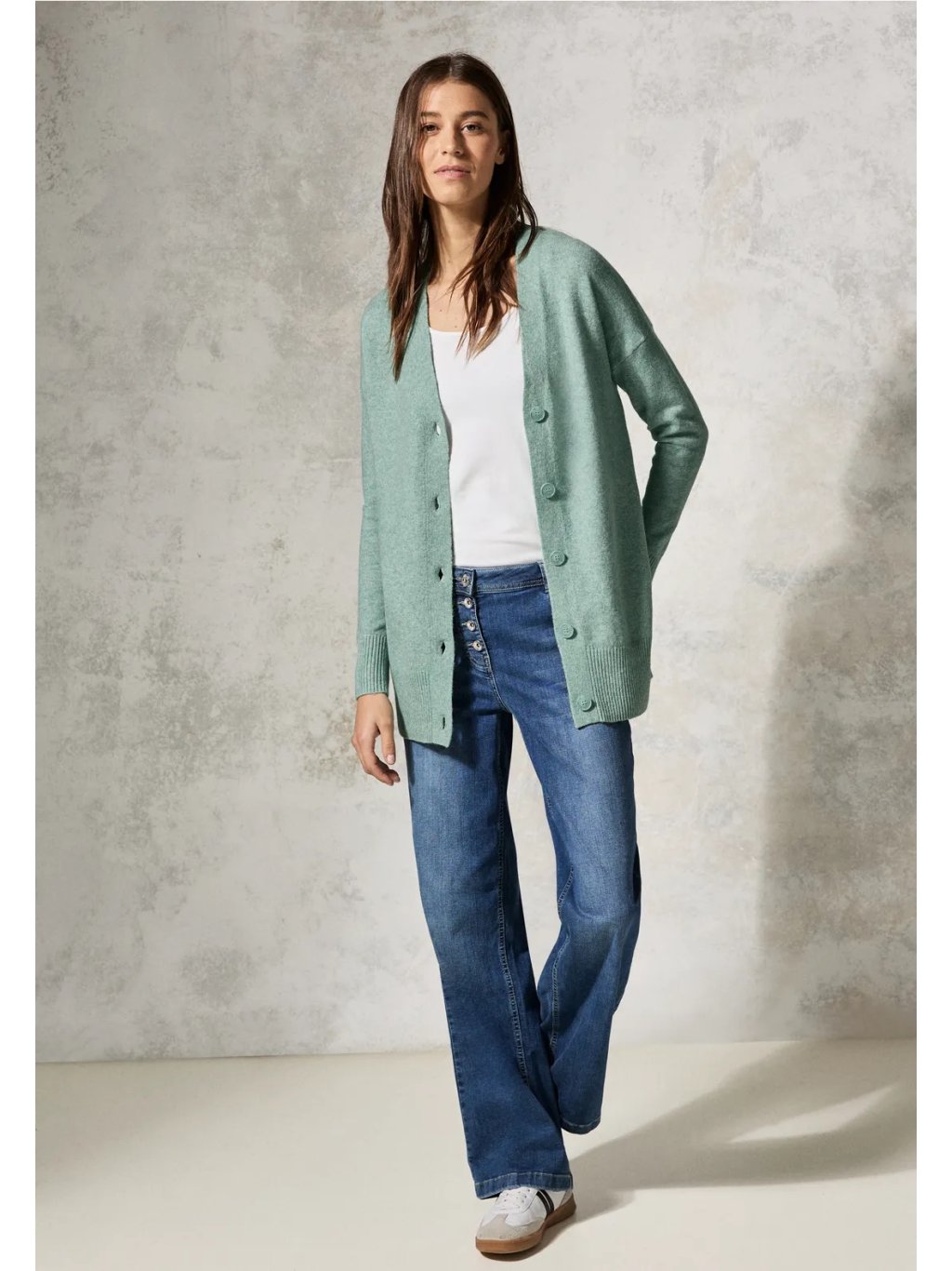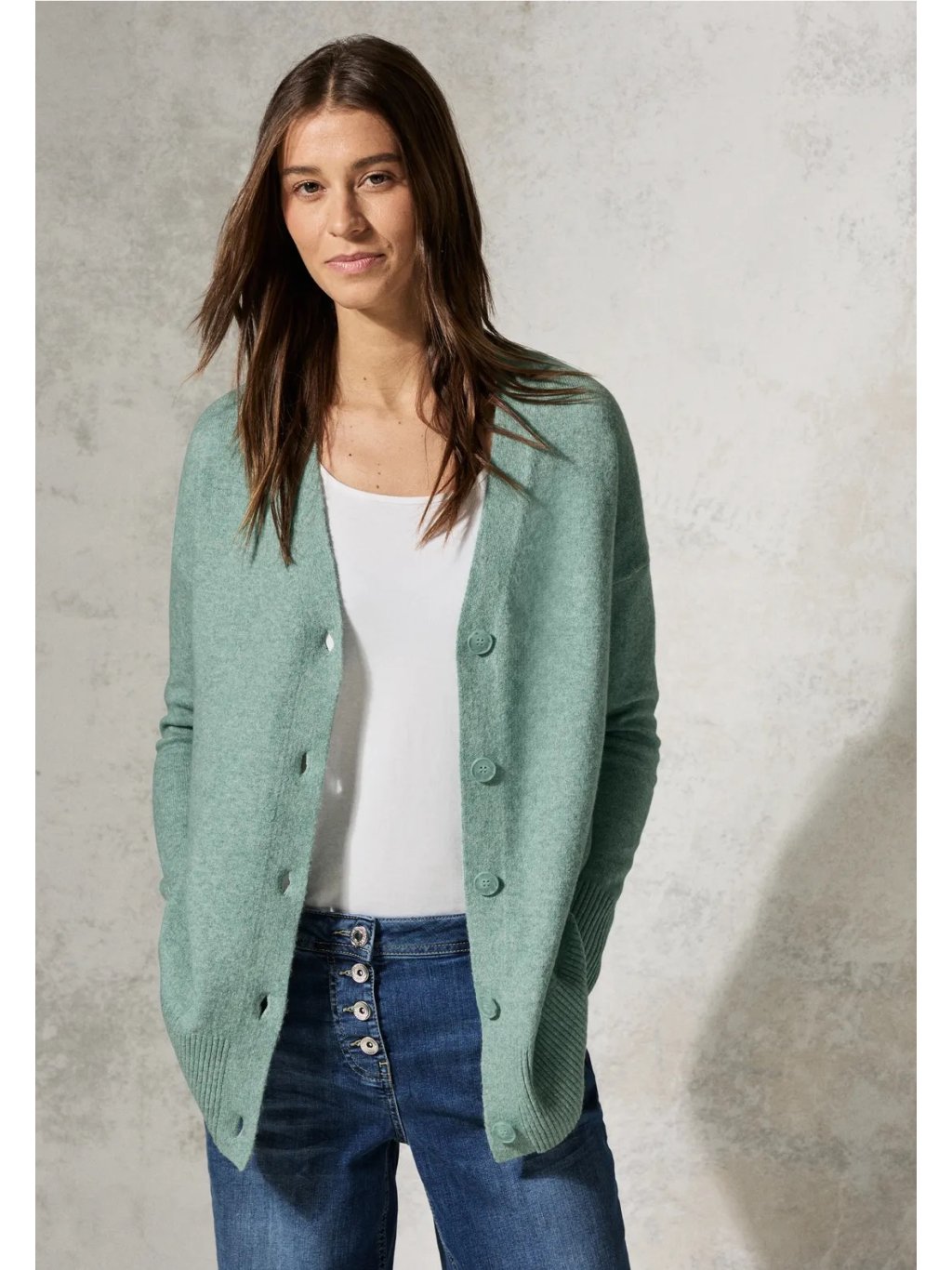 Hřejivý dámský kardigan CECIL si vás získá měkkým bavlněným materiálem s podílem elastanu, který zajišťuje maximální pohodlí při nošení. Klasický V výstřih a knoflíková léga dodávají svetru nadčasový vzhled, díky kterému ho snadno sladíte s každodenním outfitem. Dlouhé rukávy s náplety zaručují skvělé padnutí. Ideální kousek pro vrstvení během chladnějších dnů.