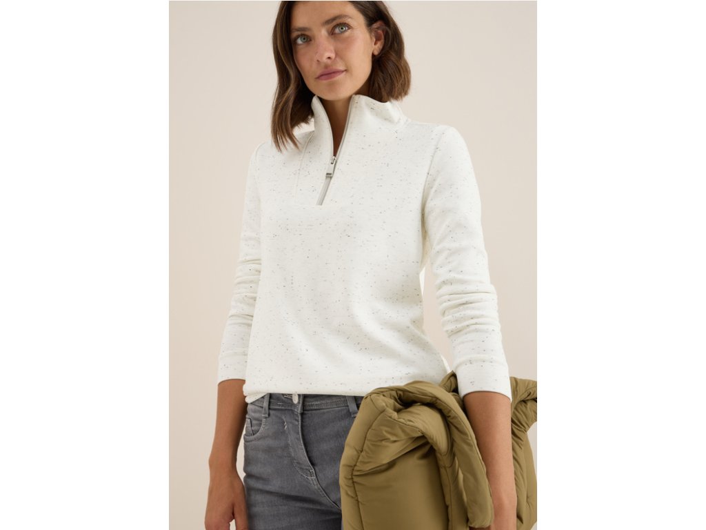 Strukturované tričko od značky CECIL kombinuje jemný vzor se sportovním límečkem Troyer. Směs viskózy s elastanem a dlouhé rukávy zajišťují příjemný komfort při nošení. Ideální volba pro pohodlné outfity s moderním nádechem.