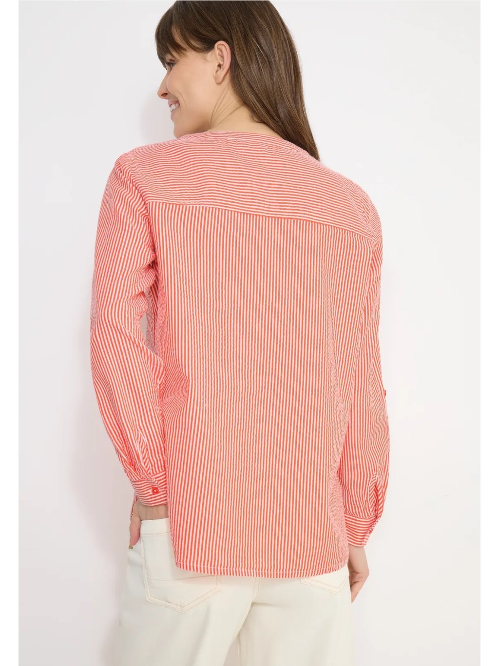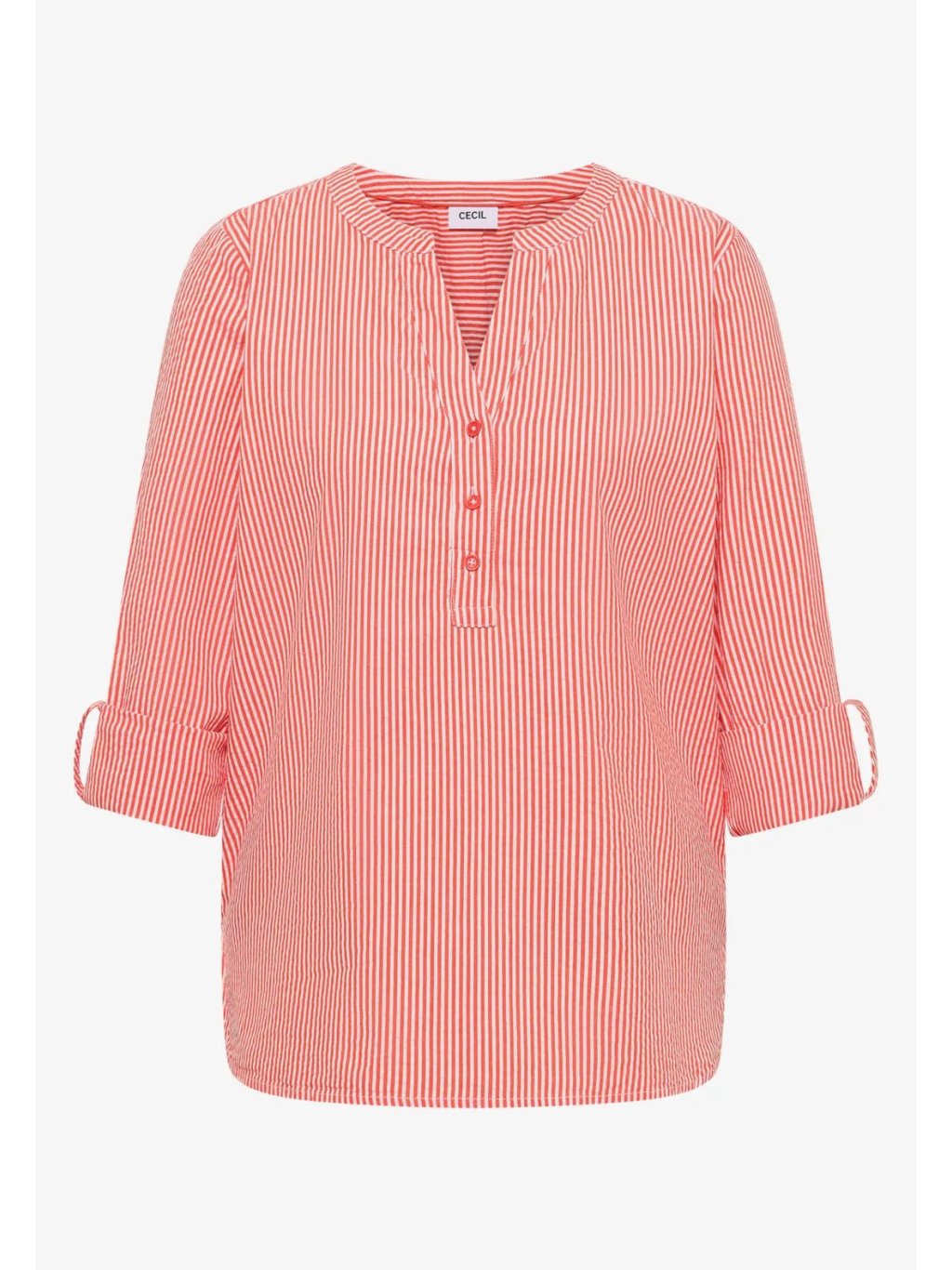 Lehká a snadno kombinovatelná: dámská seersucker halenka CECIL zaujme jemným proužkem, dekorativní knoflíkovou légou a zaobleným lemem s bočními rozparky. Strukturovaný materiál se příjemně nosí a vytváří uvolněnou siluetu, která je ideální pro svěží casual outfity do města, do práce i na volný čas.