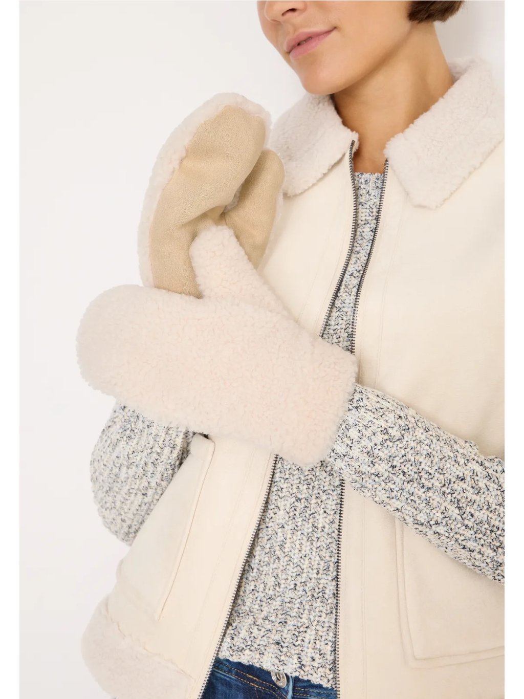Dámské palčáky CECIL jsou hřejivým zimním doplňkem, který udrží vaše ruce v teple i během chladných dní. Měkoučký materiál v teddy úpravě je příjemný na dotek a postará se o maximální pohodlí. Stylové palčáky s vysokým „feel good“ faktorem – ideální pro každodenní nošení v zimních měsících.