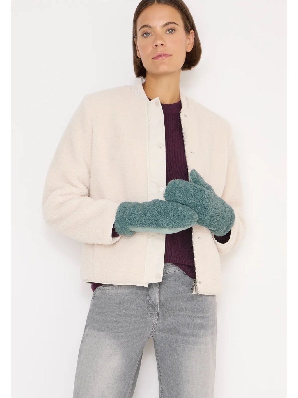 Dámské palčáky CECIL jsou hřejivým zimním doplňkem, který udrží vaše ruce v teple i během chladných dní. Měkoučký materiál v teddy úpravě je příjemný na dotek a postará se o maximální pohodlí. Stylové palčáky s vysokým „feel good“ faktorem – ideální pro každodenní nošení v zimních měsících.