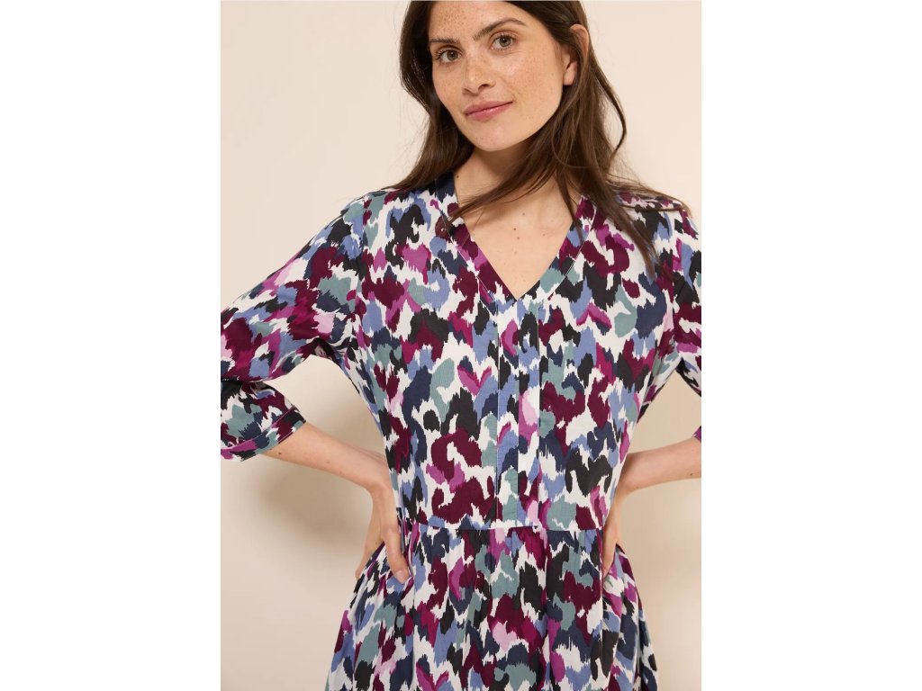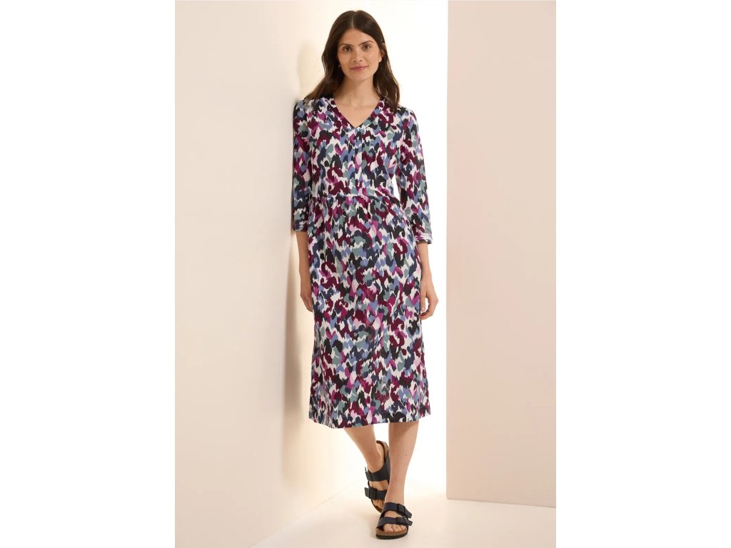 Graficky vzorované midi šaty od značky CECIL pro dámy přinášejí svěží akcenty do tvého šatníku. Výstřih s rozparkem a 3/4 rukávy zajišťují ženský vzhled, zatímco čistá bavlna nabízí vysoký komfort při nošení. Perfektní pro lehké a stylové letní outfity!