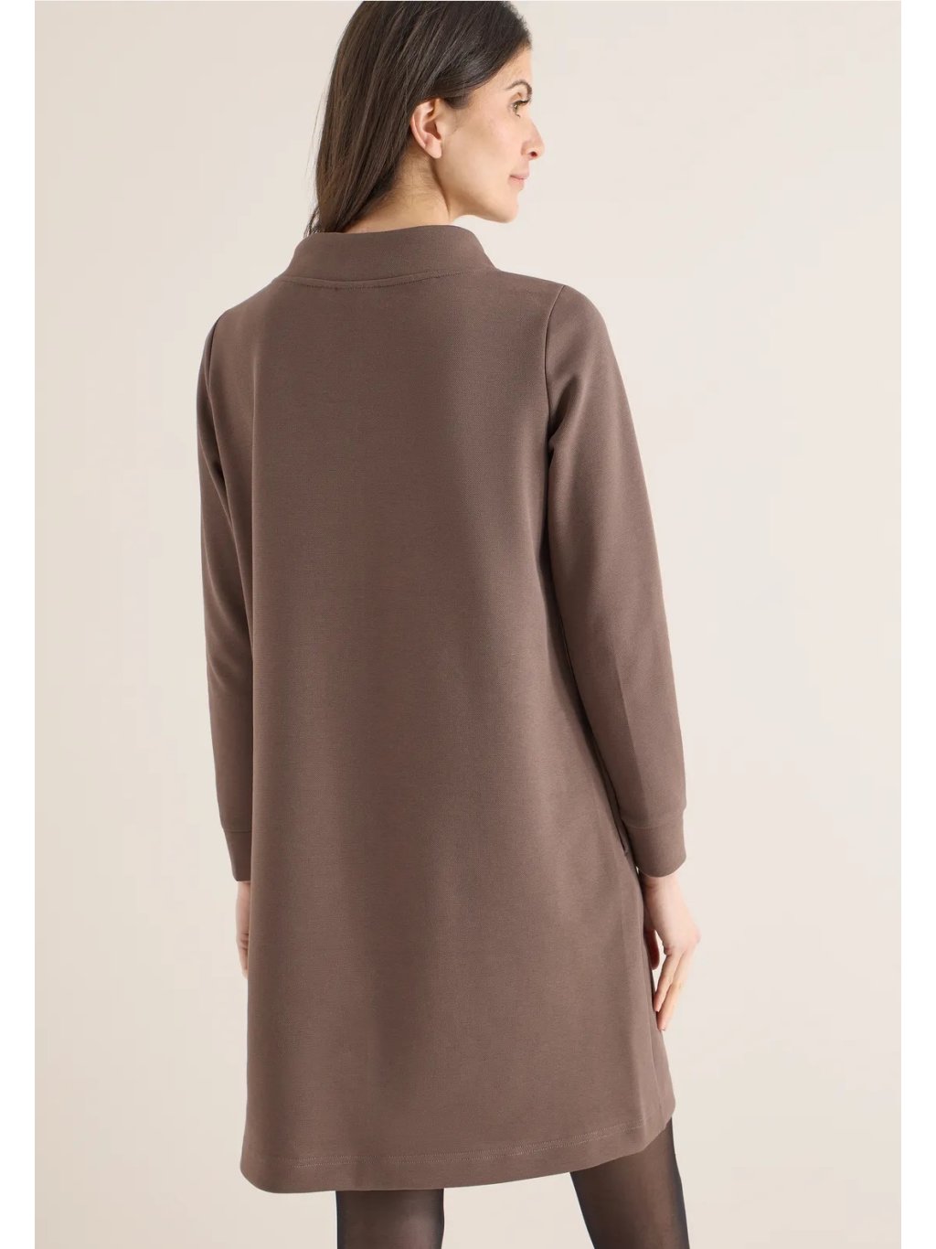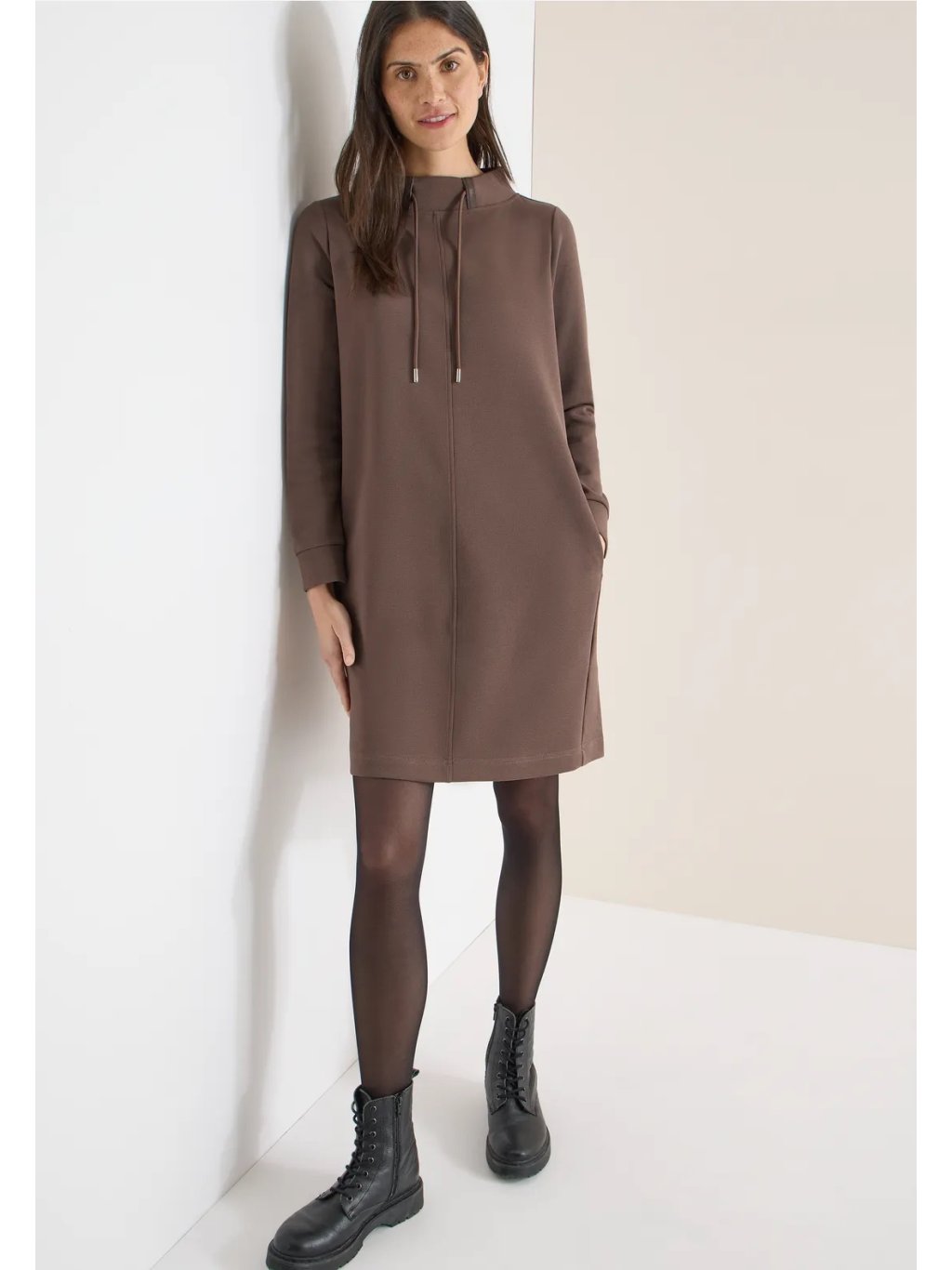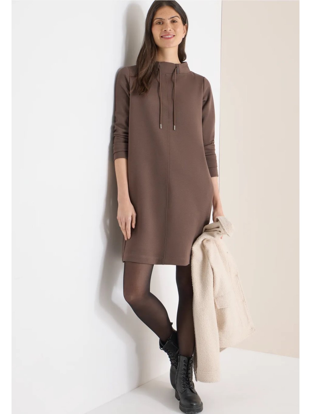 Dámské piqué šaty CECIL jsou stylovou a pohodlnou volbou pro každodenní nošení. Stojáček typu funnel neck se stahováním na šňůrku dodává sportovní nádech, stejně jako praktické boční kapsy. Jednobarevné provedení se snadno kombinuje a působí čistě a moderně. Materiálový mix s podílem streče zajišťuje příjemný komfort a volnost pohybu v ležérní siluetě – ideální do města, na cestování i na volný čas.