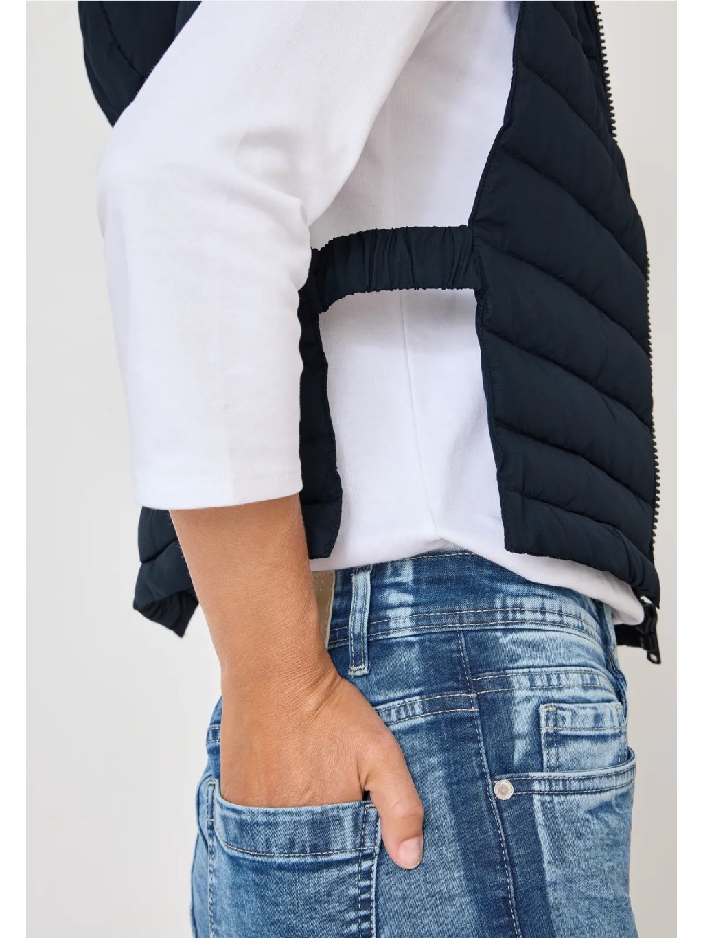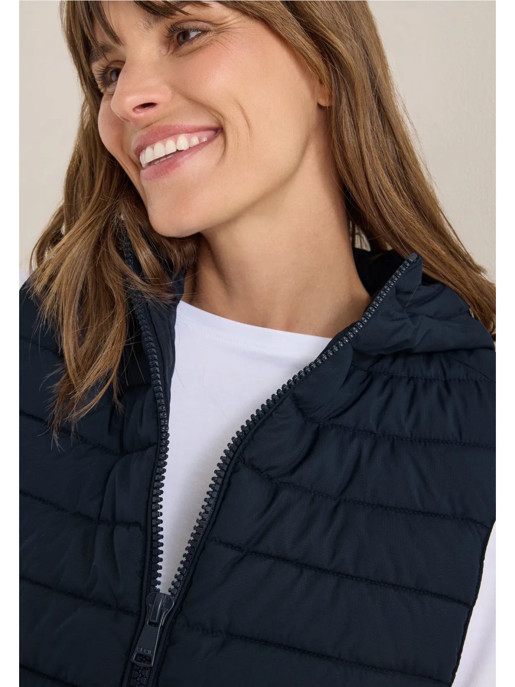 Lehce zateplená dámská vesta od značky CECIL je ideálním kouskem pro vrstvení v chladnějším počasí. Díky praktické kapuci, otevřeným bočním partiím a nastavitelným elastickým pásům poskytuje volnost pohybu a pohodlně se vejde pod bundu nebo kabát. Skvěle se kombinuje s oblíbeným svrchním oblečením a zajišťuje příjemné teplo a měkký komfort i během mrazivých dnů.