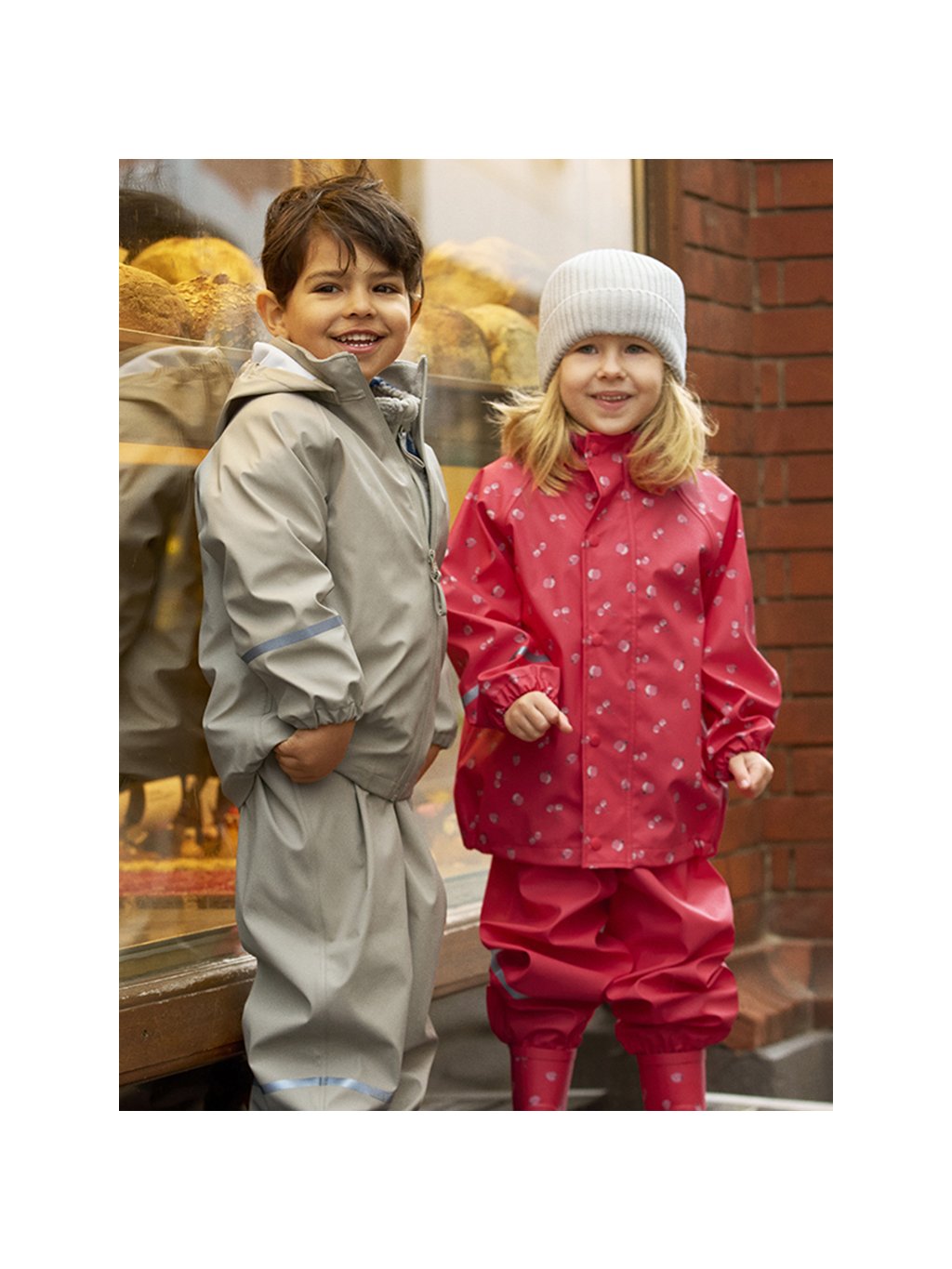 Pláštěnková bunda je vybavena voděodolným zipem a odnímatelnou kapucí. Elastické lemy na rukávech, v kapuci a v pase pomáhají zabránit pronikání vody a větru. Pro lepší viditelnost dítěte za šera nebo ve tmě jsou na oblečení umístěny reflexní prvky – na rukávu, nohavici i kapuci.