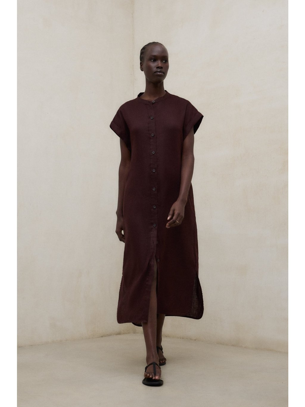 Ecoalf lněné šaty AMATISTA hnědé