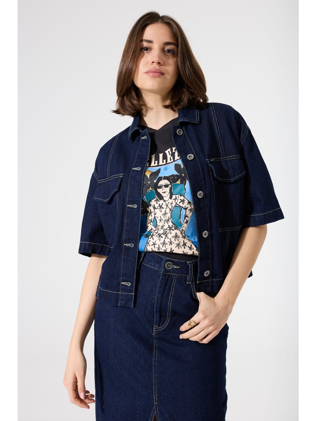 Zkrácená džínová košile skvěle vynikne v kombinaci s vysokými kalhotami, sukní nebo šortkami, a proto je ideální pro každodenní outfity i volný čas. Díky využití recyklovaných vláken podporuje také udržitelnou módu a cirkulární ekonomiku.