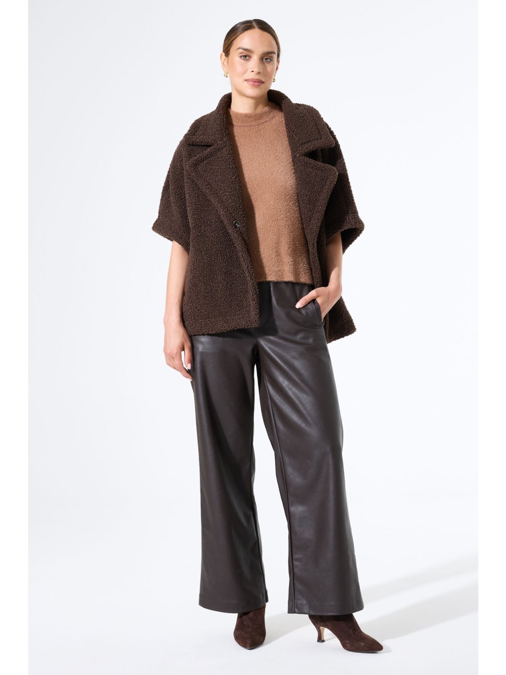 Dámské kalhoty s trendy koženým vzhledem jsou dokonalou volbou pro moderní ženu, která hledá kombinaci stylu, pohodlí a výrazného designu. Díky vysokému pasu, elastickému pásu a širokému střihu nohavic nabízejí maximální komfort a současně vytvářejí působivou, uvolněnou siluetu. Materiál 100% polyester dodává kalhotám lehkost, snadnou údržbu a výrazný „leather look“, který působí luxusně.