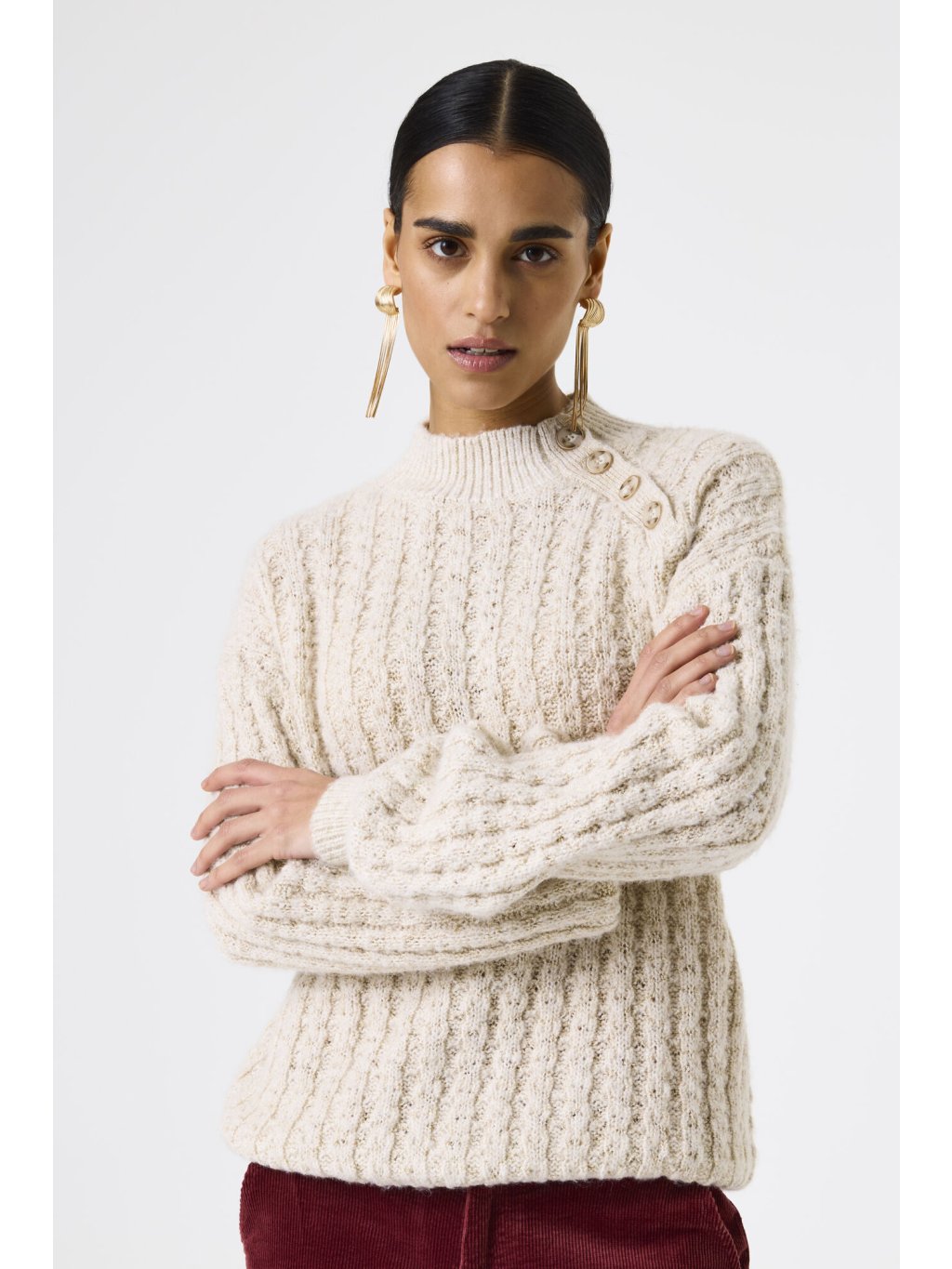 Stylový svetr GARCIA s unikátní texturou a elegantními knoflíkovými detaily je ideální pro každodenní nošení i speciální příležitosti. Díky kulatému výstřihu, dlouhým rukávům a klasickému střihu nabízí pohodlí a nadčasový vzhled. Kombinace 50% recyklovaného polyesteru, 33% polyesteru, 10% metalické příze a 7% vlny zajišťuje měkkost, teplo a jemný lesk.