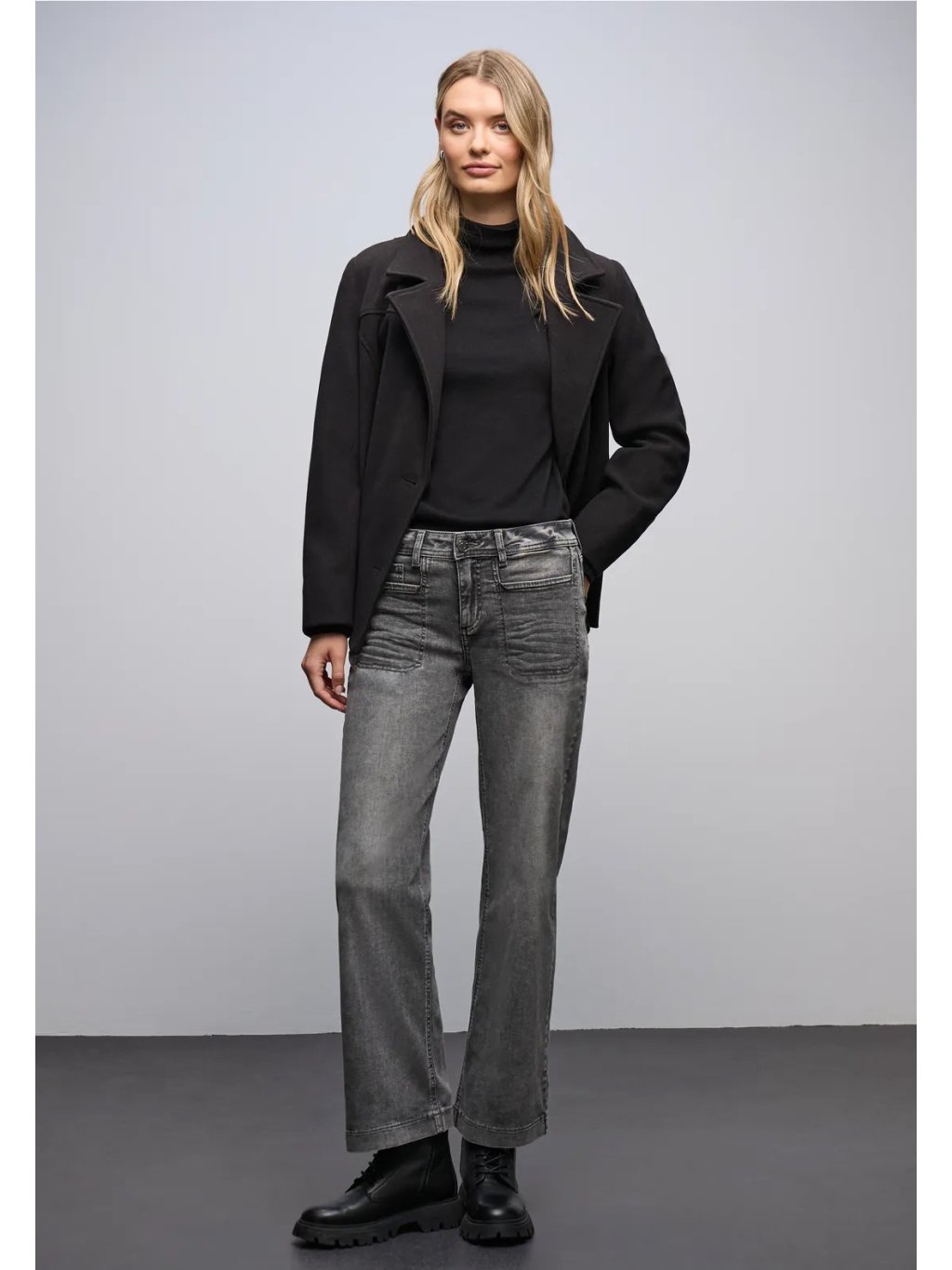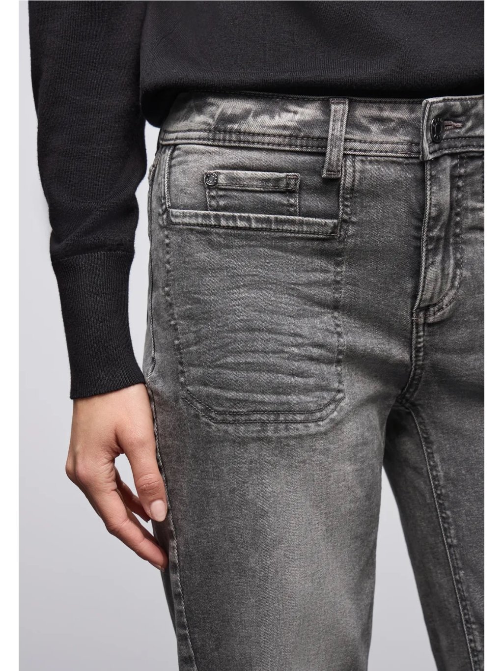 Stylové dámské džíny Street One s širokými nohavicemi a casual fit střihem jsou perfektní volbou pro moderní a ležérní outfit. Díky šedému denimu působí trendy a snadno se kombinují s tričkem, halenkou i sakem.