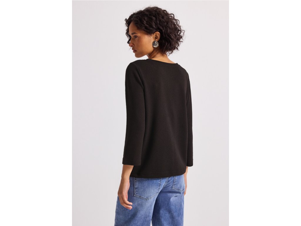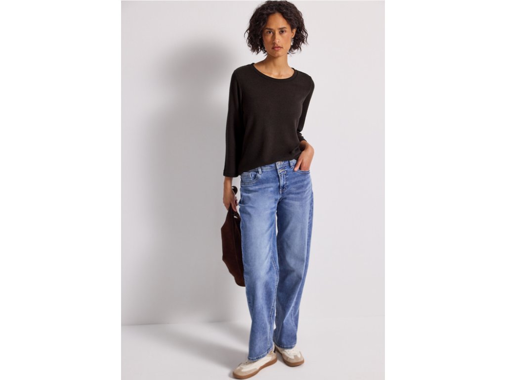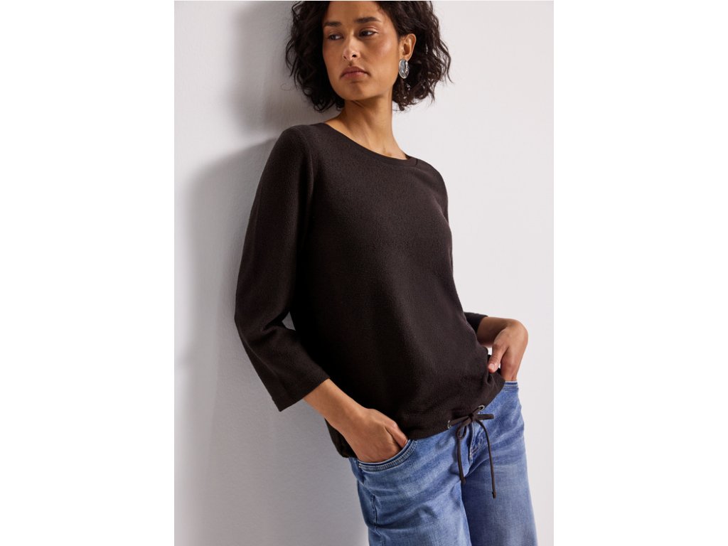 Stylové dámské tričko od značky Street One je ideální volbou pro každodenní nošení. Příjemně měkký materiál zajišťuje maximální pohodlí a trendy pletený vzhled působí moderně a elegantně. Kulatý výstřih se žebrovanými detaily dodává tričku ženský šmrnc, zatímco stahovací šňůrka v lemu umožňuje snadné přizpůsobení střihu. Tříčtvrteční rukávy s manžetami podtrhují ležérní styl. Perfektní k džínám i sukni – univerzální kousek, který nesmí chybět ve vašem šatníku.