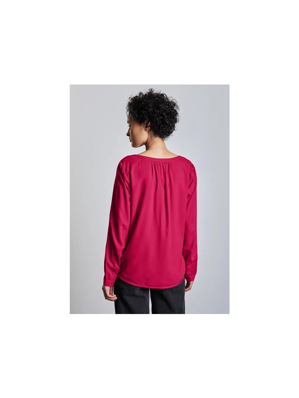Dámská halenka od Street One v jednobarevném provedení je elegantní a všestranná. Výstřih s jemným rozparkem a dlouhé rukávy s knoflíky na manžetách dodávají klasický vzhled. Lehká viskóza je příjemná na dotek a zajistí tak pohodlí po celý den.