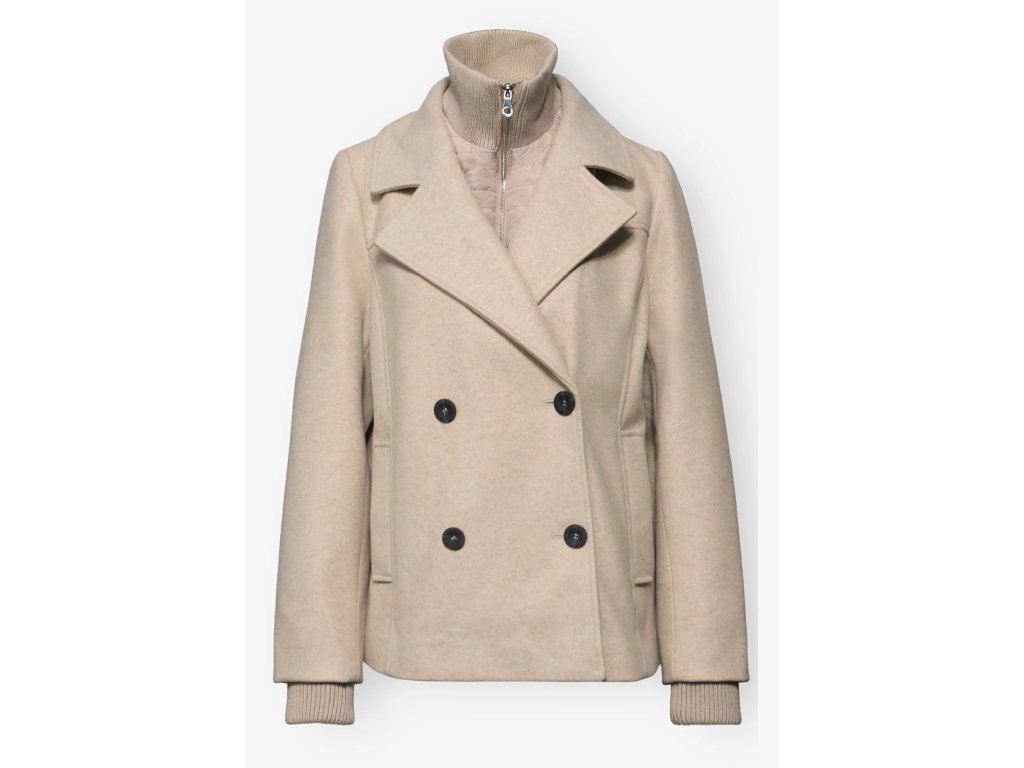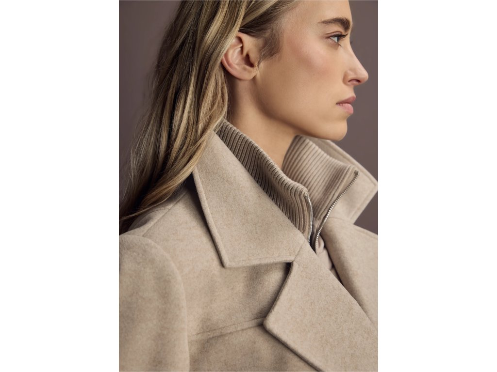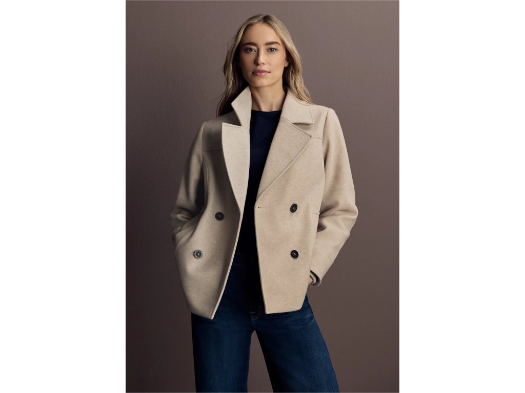 Krátký elegantní kabát od Street One pro dámy zaujme svým moderním vrstveným vzhledem a promyšleným designem. Vyjímatelná prošívaná vložka se stojáčkem poskytuje příjemné teplo a umožňuje flexibilní nošení podle počasí. Klasické knoflíky, boční kapsy a žebrované manžety na rukávech dodávají modelu styl i pohodlí. Tento elegantní kabát je ideální společník pro přechodné období, který spojuje funkčnost a ženský šarm.