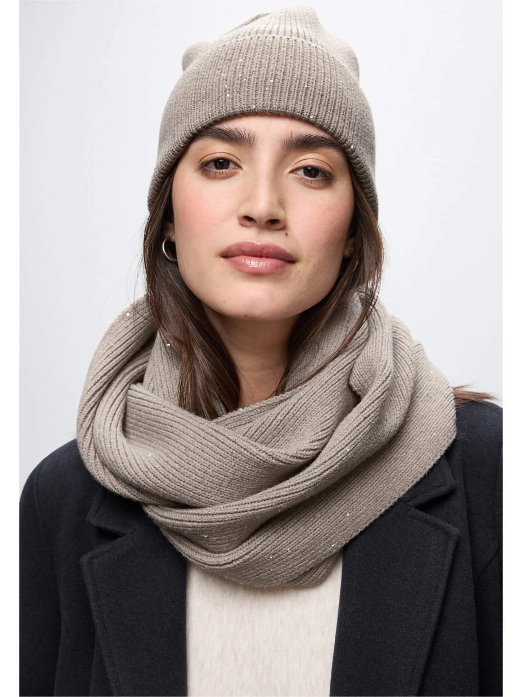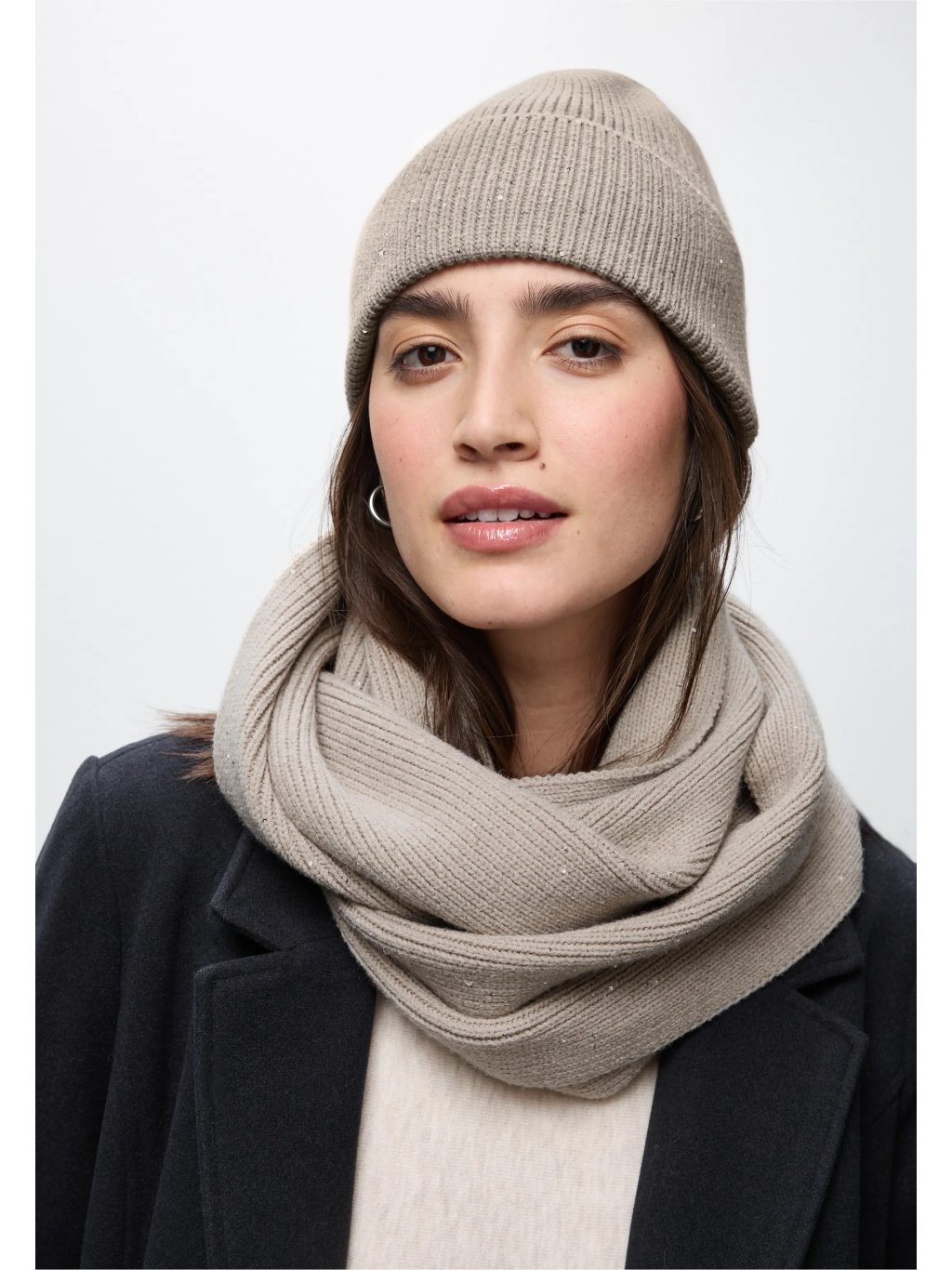 Stylový šál typu loop od značky Street One nadchne měkkou žebrovanou strukturou a lesklými flitry, které vytvářejí třpytivé akcenty. Příjemný materiál se hebce oviní kolem krku a zajistí hřejivý komfort. Elegantní doplněk, který vašemu outfitu dodá jedinečný šmrnc.