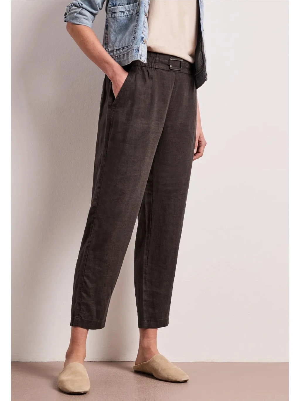 Street One lněné kalhoty 379809 hnědé