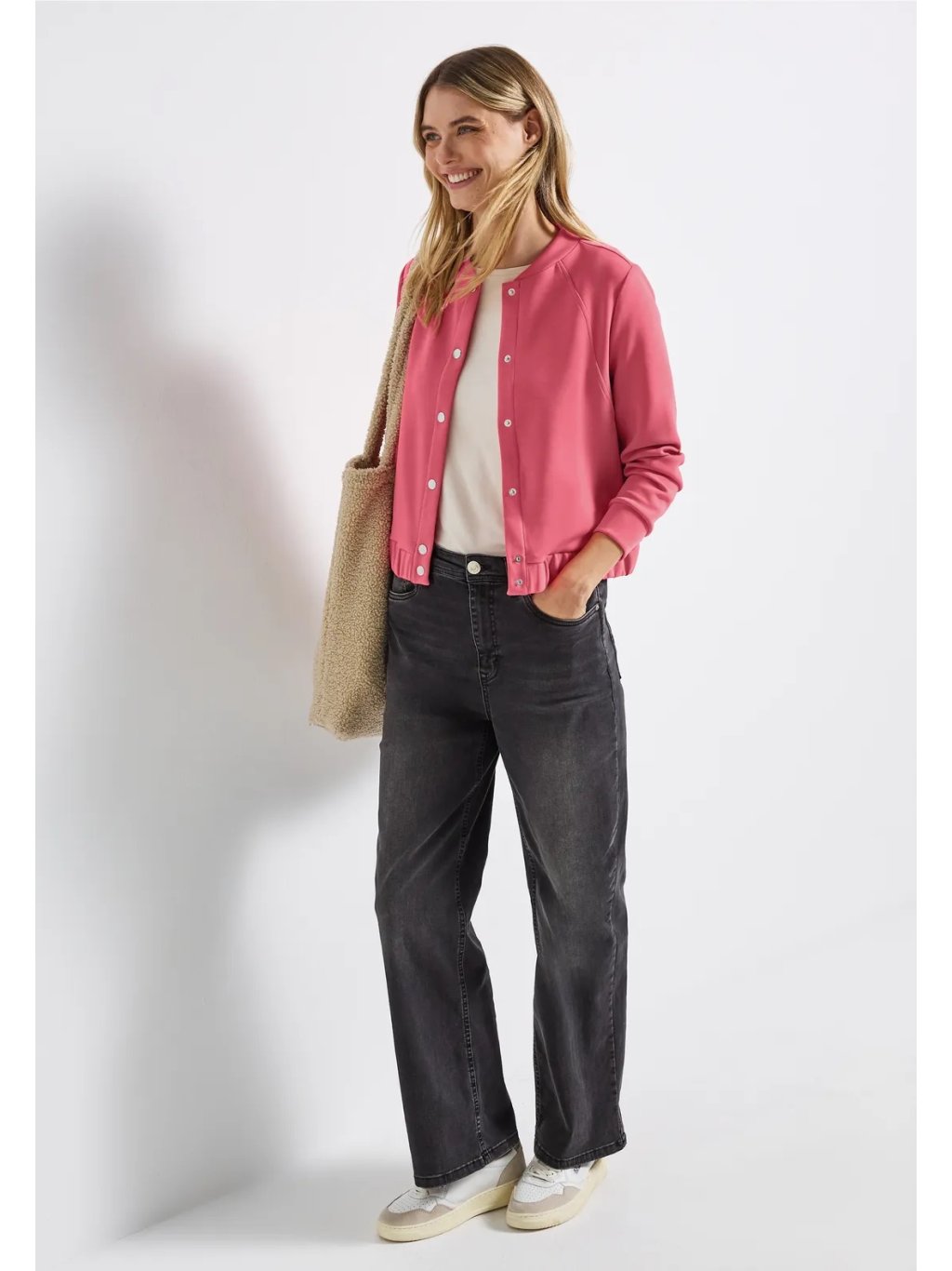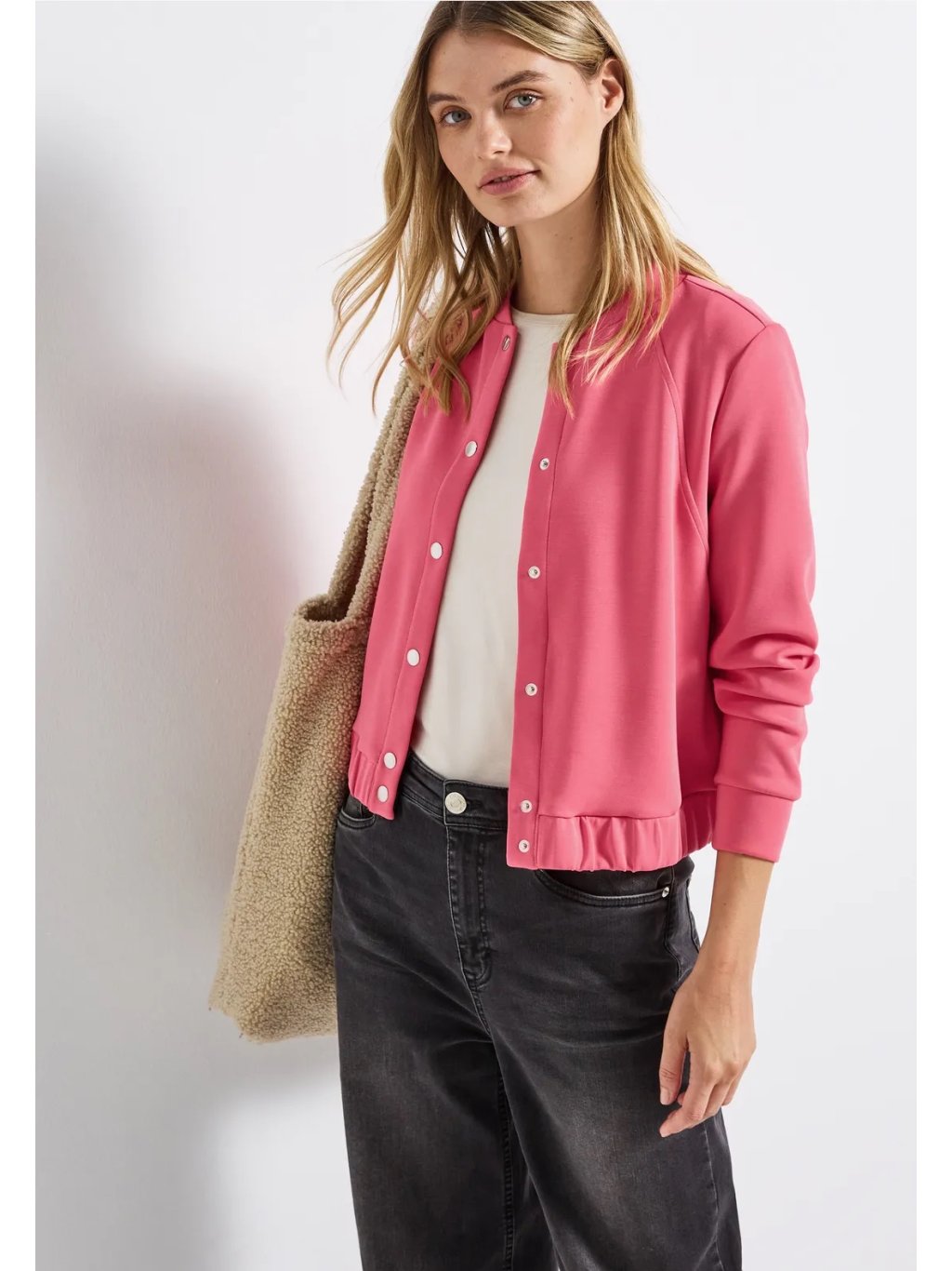 Lehká dámská bunda od značky Street One spojuje elegantní saténový vzhled se sportovním ležérním stylem. Matné knoflíky, kulatý výstřih a elastický spodní lem vytvářejí moderní siluetu, která lichotí postavě. Praktické boční kapsy zajišťují pohodlí při každodenním nošení. Ideální kousek pro stylové outfity v přechodném období.