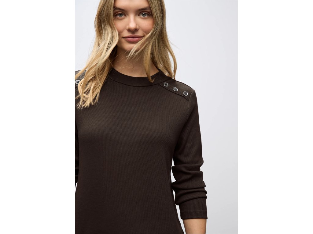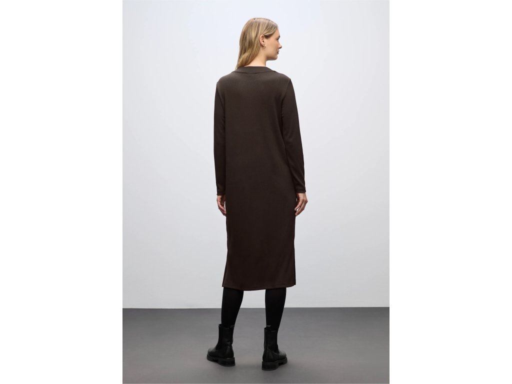 Midi šaty od značky Street One upoutají přiléhavou žebrovanou strukturou a stylovými detaily. Stojáček a knoflíkové ozdoby na ramenou dodávají outfitu jedinečný charakter, zatímco boční rozparky zajišťují volnost pohybu a moderní vzhled. Měkký materiál se příjemně nosí, díky čemuž jsou šaty ideálním parťákem pro pohodlné a ležérní outfity.