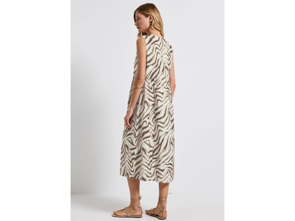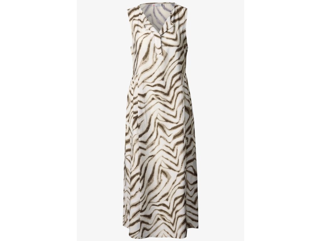 Lehké a pohodlné letní šaty od Street One s moderním grafickým vzorem jsou ideální volbou pro horké dny. Díky příjemné viskózové směsi se skvěle nosí a dodají tvému outfitu ležérní svěžest. Šaty mají ženský rozparek u výstřihu a bezrukávový střih, který zajišťuje volnost a vzdušnost. Perfektní pro každodenní nošení i stylové letní kombinace.