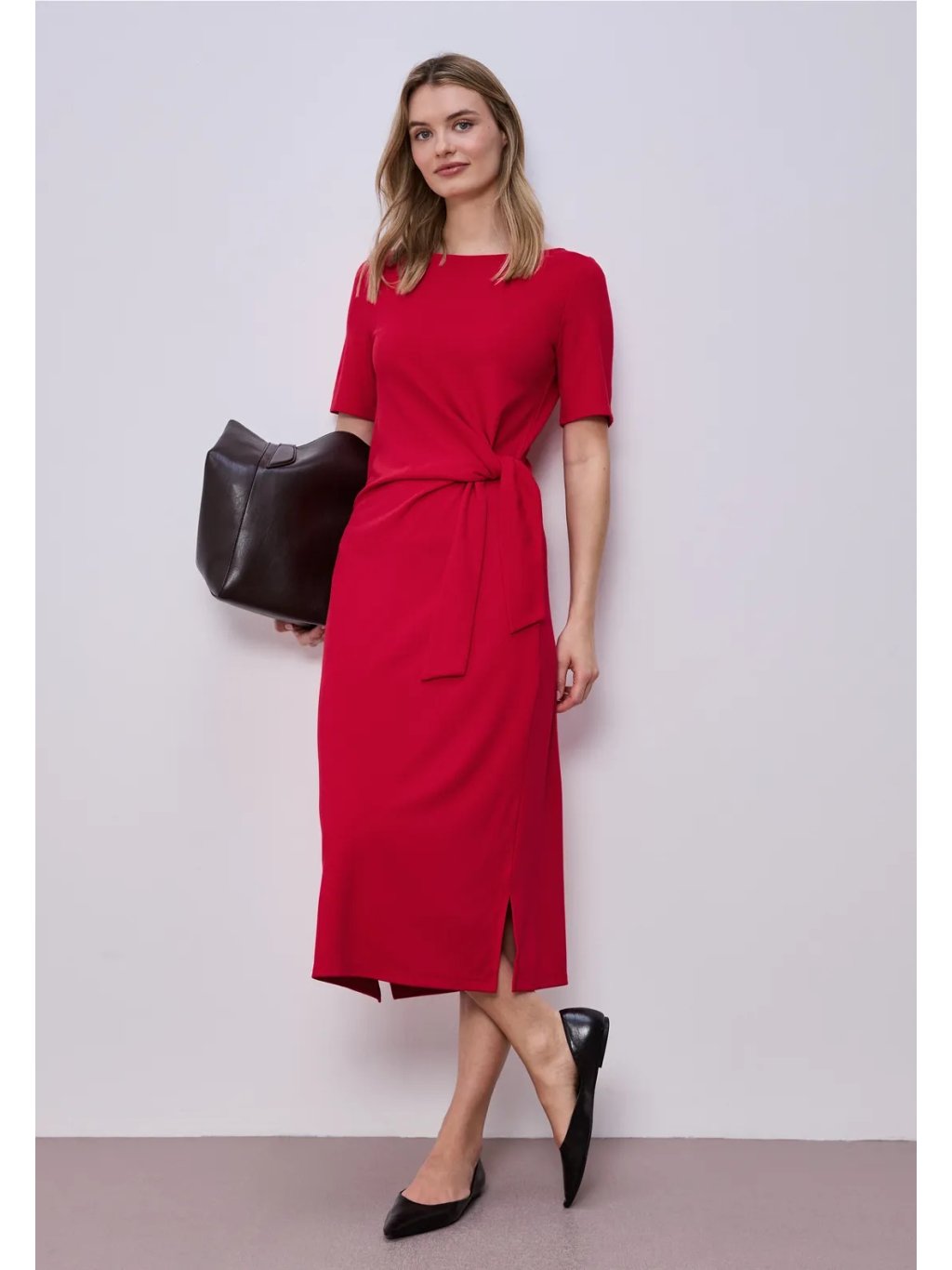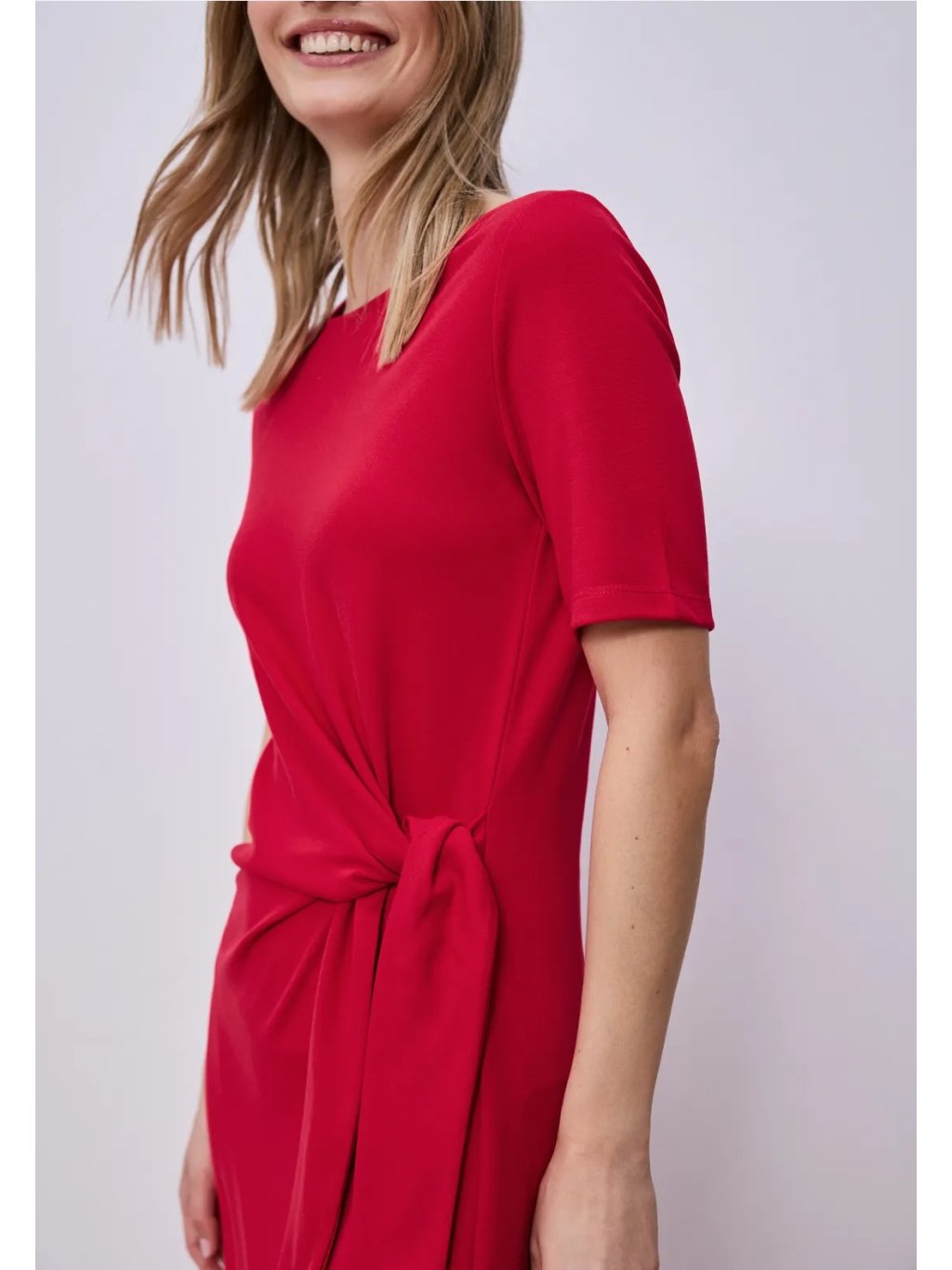 Dámské jerseykleid Street One je pohodlné midi šaty s měkce splývavou siluetou, které využijete na každý den i na upravenější příležitosti. Kulatý výstřih a krátké rukávy působí čistě a nadčasově, zatímco zavazování v pase vytváří ženské zvýraznění postavy a dodává modelu moderní detail. Příjemný jersey materiál se pohodlně nosí a krásně drží tvar. Skvělé k teniskám pro casual look i k balerínám či sandálům pro elegantnější styling.