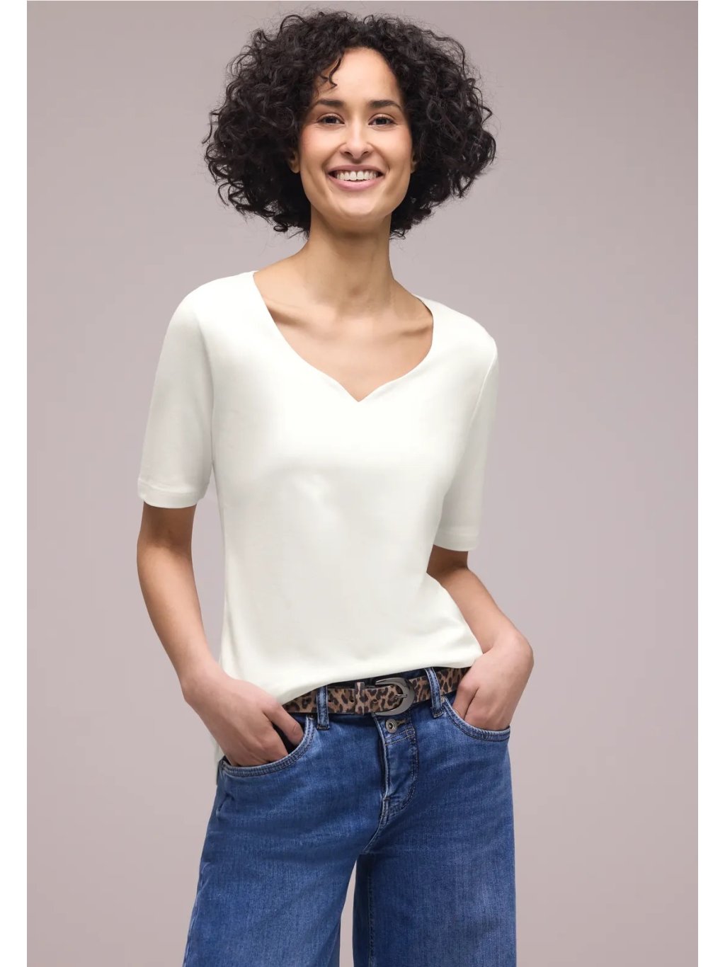 Dámské basic tričko Street One ve střihu Ada zaujme ženským srdcovým výstřihem, který dodává jednoduchému modelu jemně elegantní nádech. Díky 100% bavlně je příjemně měkké na dotek a pohodlné pro každodenní nošení. Jednobarevné provedení a čistý design z něj dělají univerzální základ šatníku, který snadno zkombinujete od casual outfitů až po jemně ženské, ležérní stylingy. Krásný basic kousek, po kterém sáhnete znovu a znovu.