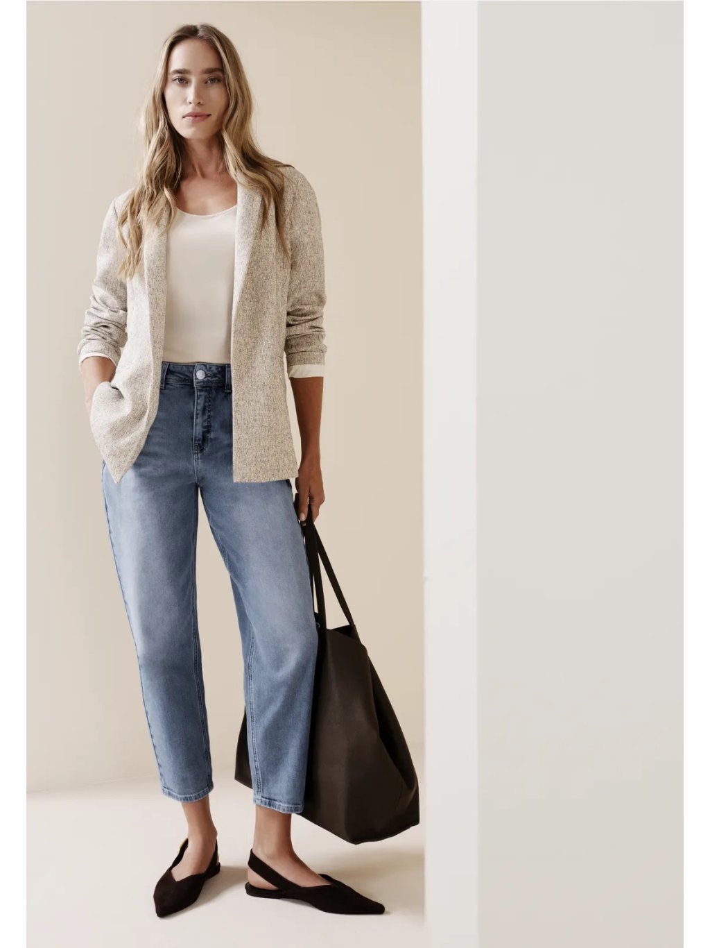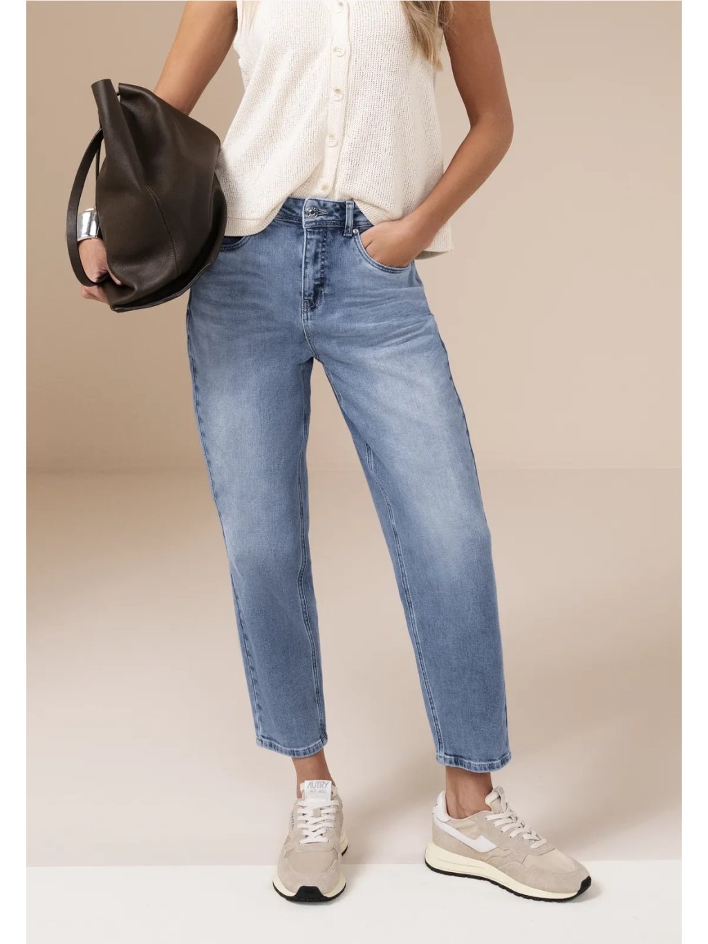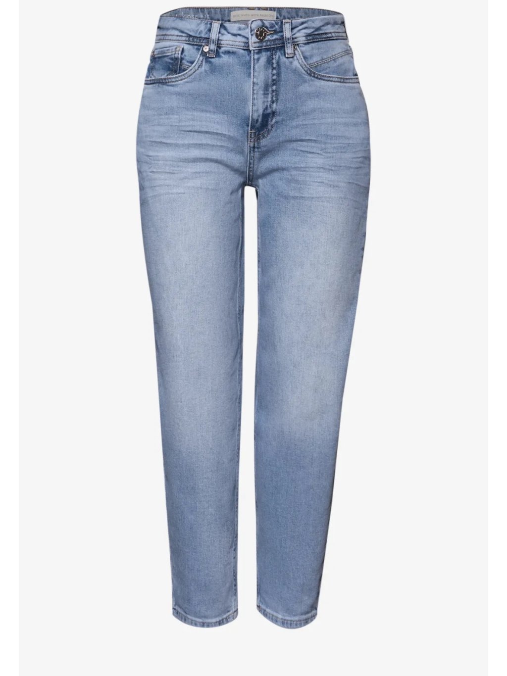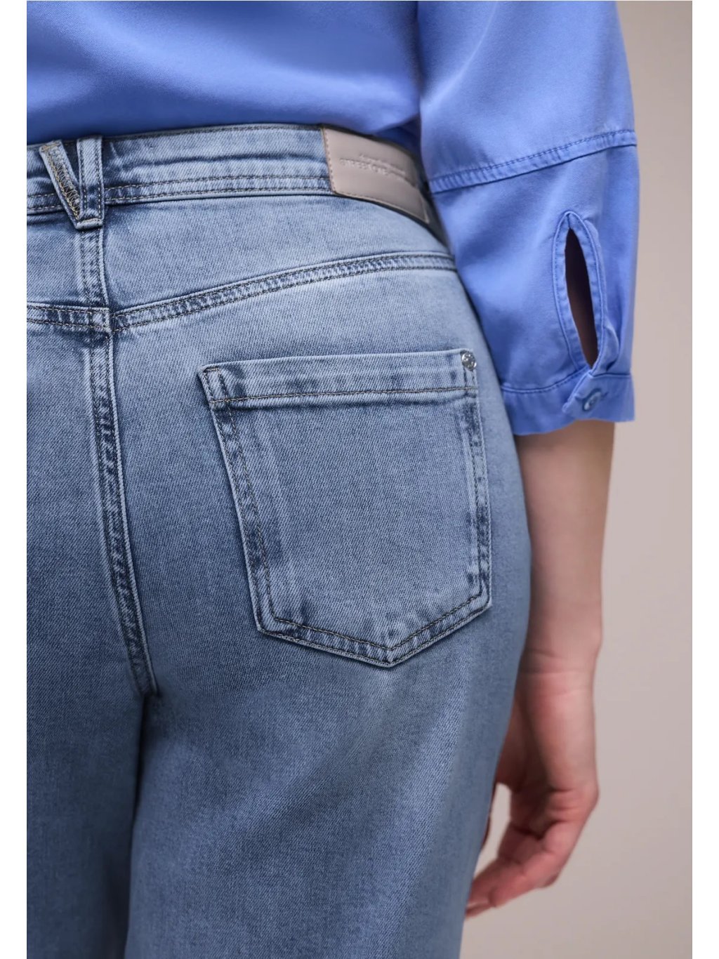 Dámské džíny Street One v moderním barrel střihu jsou pohodlný a stylový kousek pro každý den. Vysoký pas (high waist) a volnější fit krásně drží tvar a zároveň působí uvolněně, zatímco zúžené „barrel“ nohavice dělají siluetu současnou a lichotivou. Světle modré praní se snadno kombinuje a díky bavlně s příměsí elastanu se denim příjemně přizpůsobí a dobře se nosí po celý den. Skvělé k teniskám a tričku pro casual look i k balerínám či saku pro upravenější outfit.
