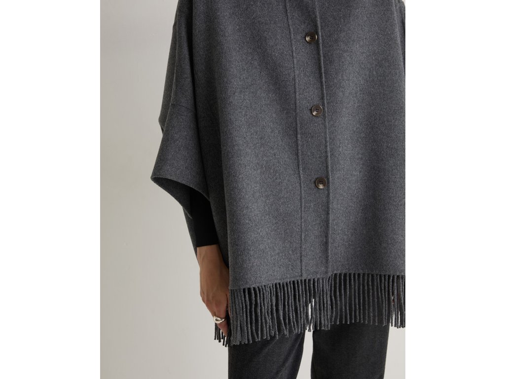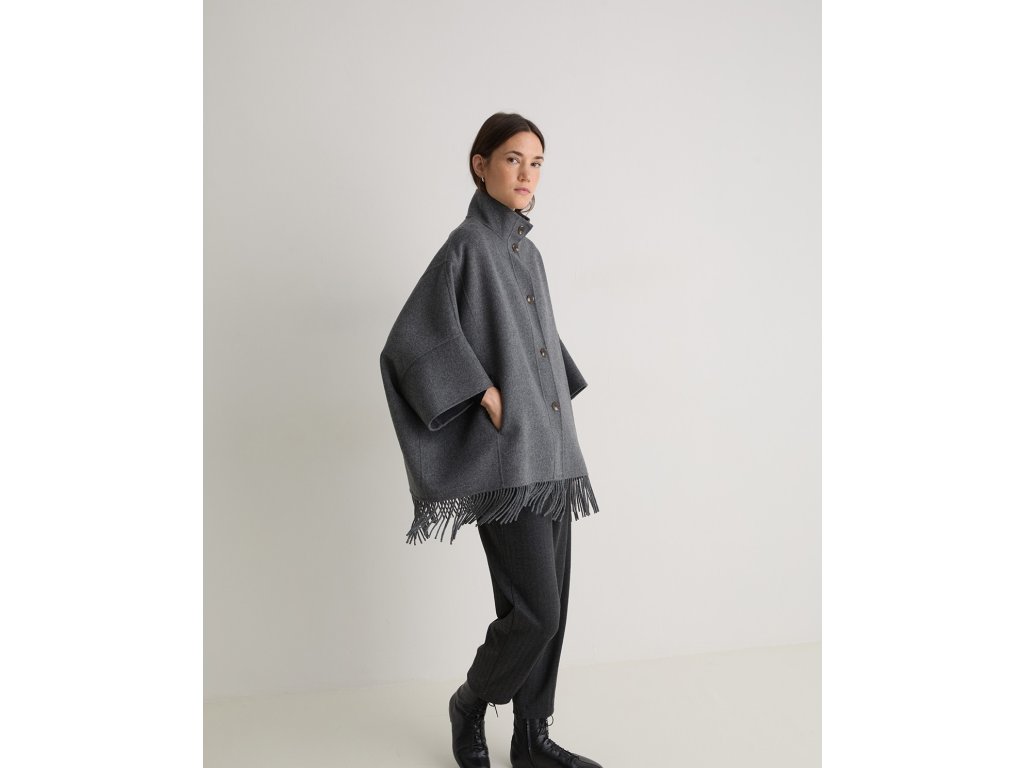 Tento elegantní šedý cape je výsledkem pečlivé ruční výroby, která zaručuje výjimečnou kvalitu, originalitu a nadčasový styl. Každý kus je jedinečný – drobné odchylky v textuře či provedení jsou znakem poctivé řemeslné práce.