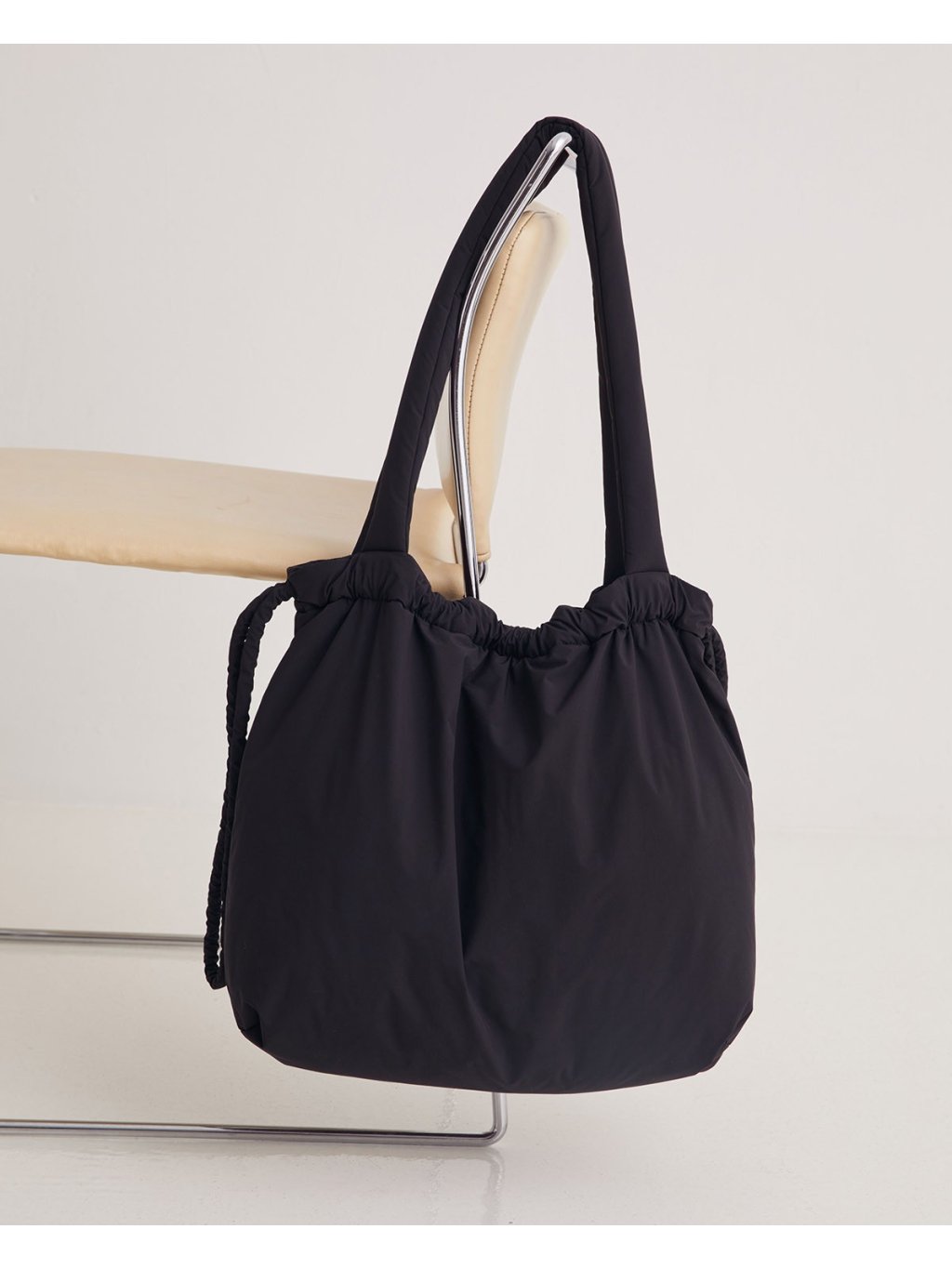 Prošívaná kabelka typu bucket bag vyrobená z recyklovaných vláken. Kabelka má podšívku, dva ramenní popruhy a zapínání na patent s nastavitelnými popruhy pro větší pohodlí. Uvnitř se nachází praktická kapsa na drobnosti.
