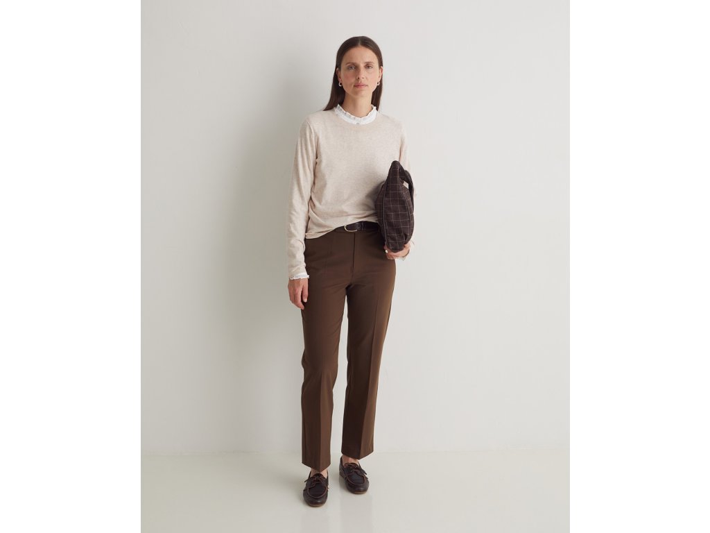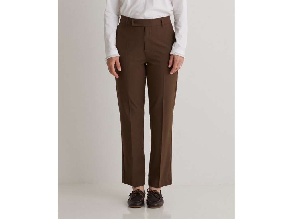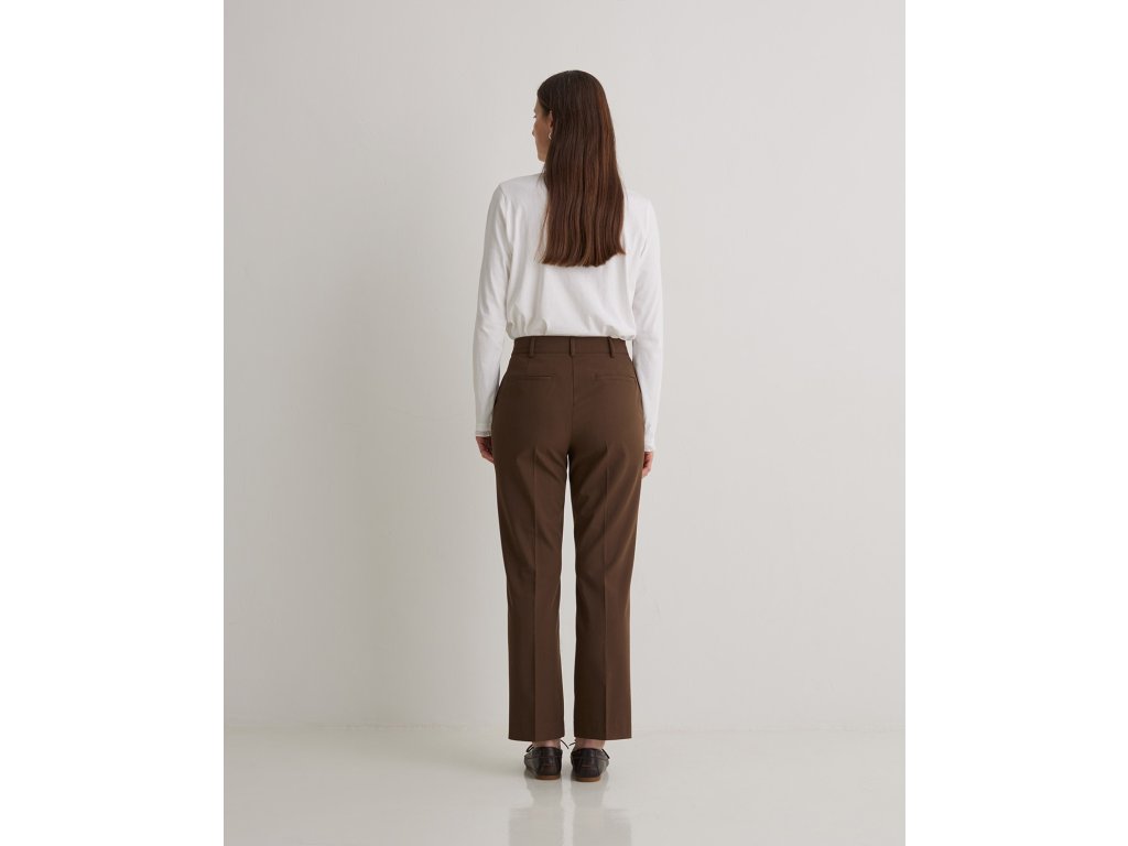 Elegantní hnědé kalhoty Yerse představují spojení klasické elegance a moderního pohodlí. Díky regular fit střihu a jemným předním nápletům (pleats) opticky prodlužují postavu a vytvářejí sofistikovaný, upravený vzhled vhodný pro formální i smart-casual outfity.