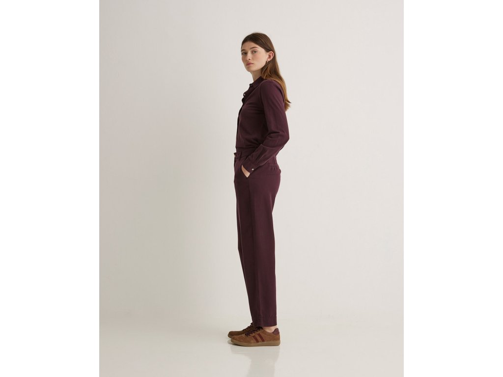 Elegantní a pohodlné kalhoty ve vínové barvě Yerse, vyrobené z 100% Tencelu, což je ekologický a prodyšný materiál s hedvábným leskem. Tyto kalhoty spojují moderní střih s udržitelným přístupem k módě.
