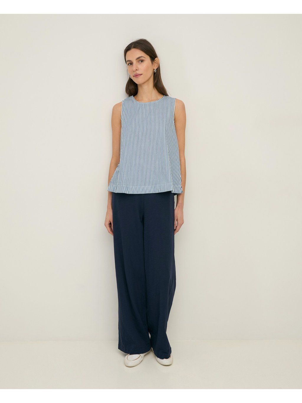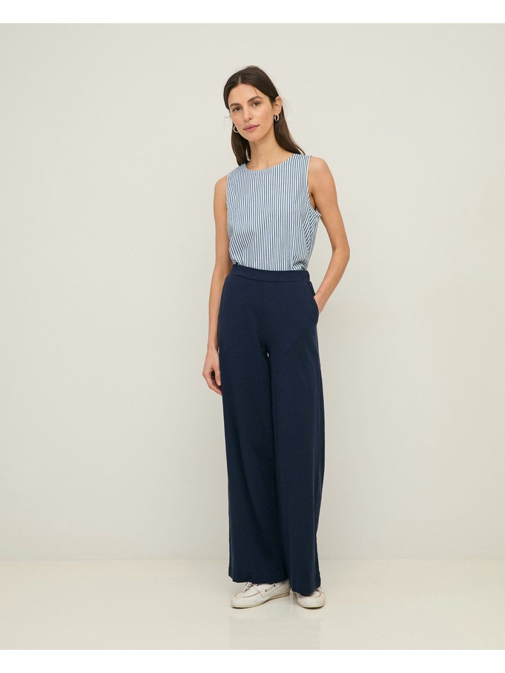 Lehké kalhoty z bavlny přinášejí uvolněnou eleganci a maximální pohodlí; vzdušný slub materiál krásně splývá a široké nohavice dodávají siluetě moderní, nenucený charakter, zatímco středně vysoký pas s elastickým pasem zajišťuje komfort při nošení. Praktické boční kapsy a zadní výpustkové kapsy doplňují funkční stránku, díky čemuž jsou ideální volbou pro letní dny i ležérně laděné outfity.
