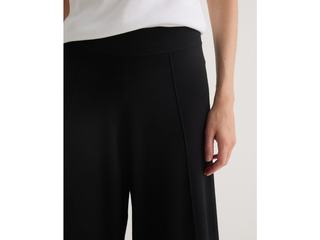 Stylové culottes v černém provedení s volně padajícím střihovým vzhledem. Mají elastický pas, takže není nutné žádné zapínání, a zajišťují pohodlí při každém pohybu. Díky lehkému materiálu nabízejí vzdušnost a plynulý pohyb. Ideální volba pro elegantní, ale pohodlný outfit – snadno je zkombinuješ jak s halenkou, tak s volnějším topem.