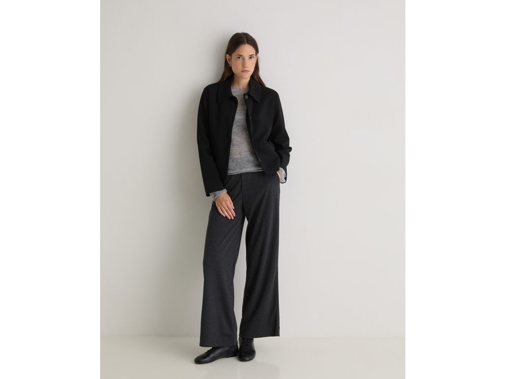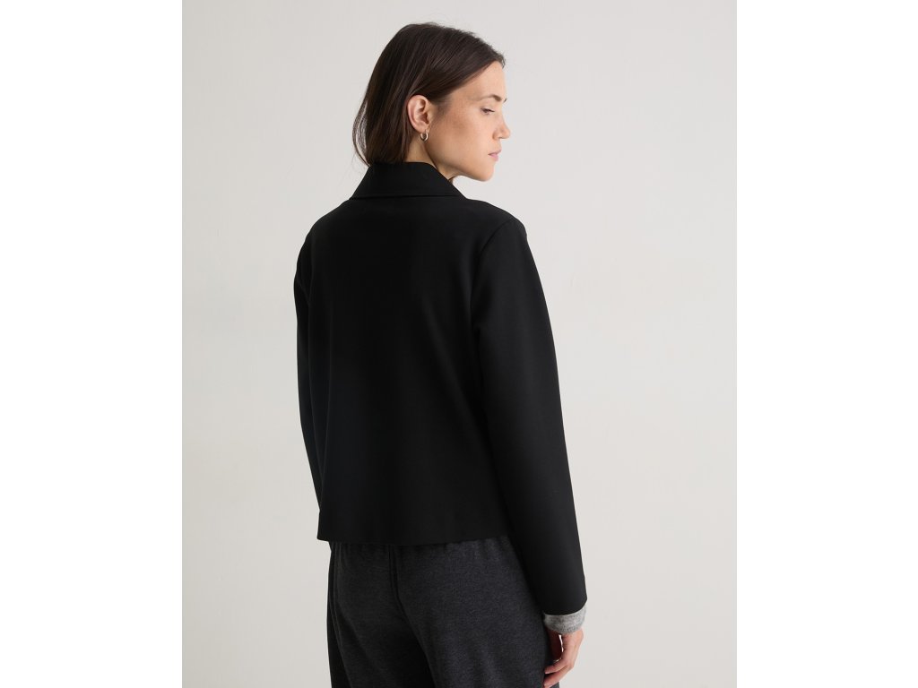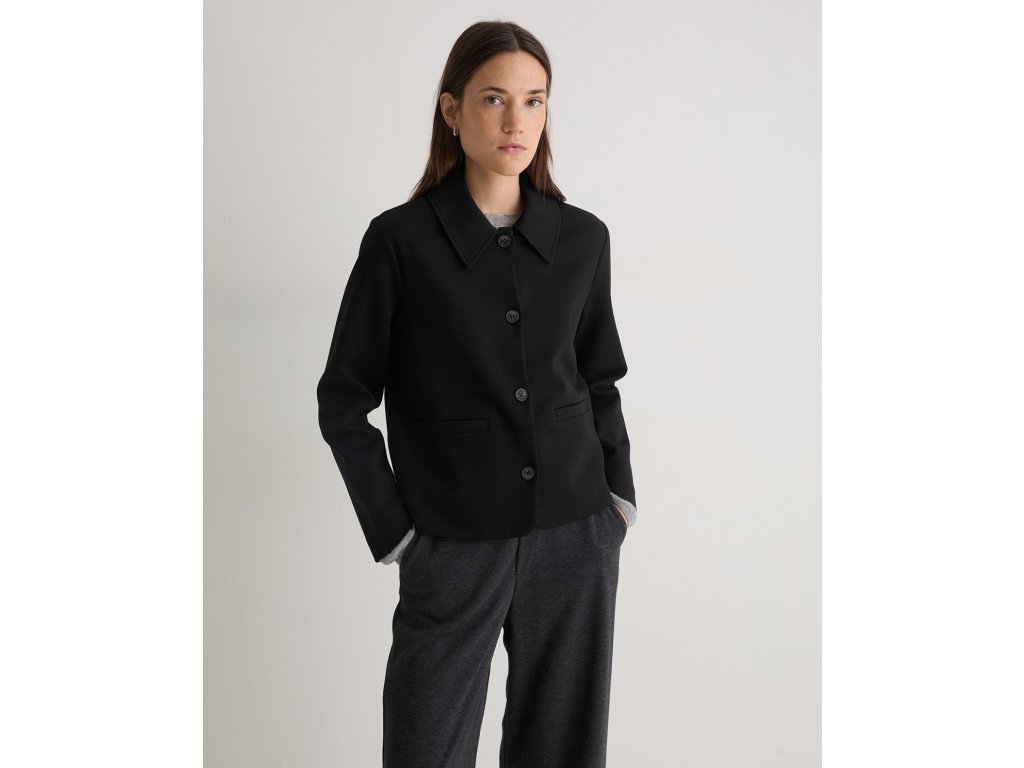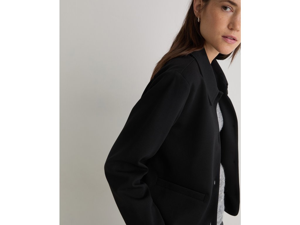 Stylová krátká bunda Yerse v klasické černé barvě. Lehký materiál s jemnou pružností zajišťuje pohodlí i volnost pohybu. Bunda má polo límeček, dlouhé rukávy a zapínání na knoflíky. Praktické klopové kapsy na přední straně dodávají ležérní vzhled. Díky kratšímu střihu se skvěle hodí k šatům, sukni i džínám a snadno doplní váš každodenní outfit.