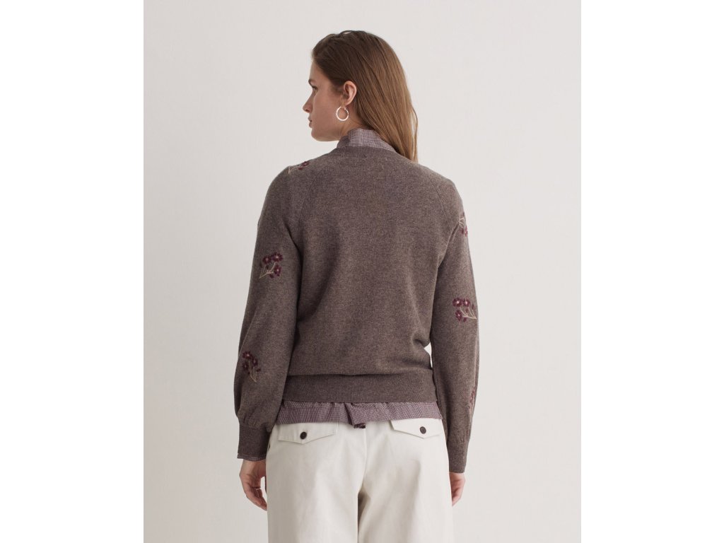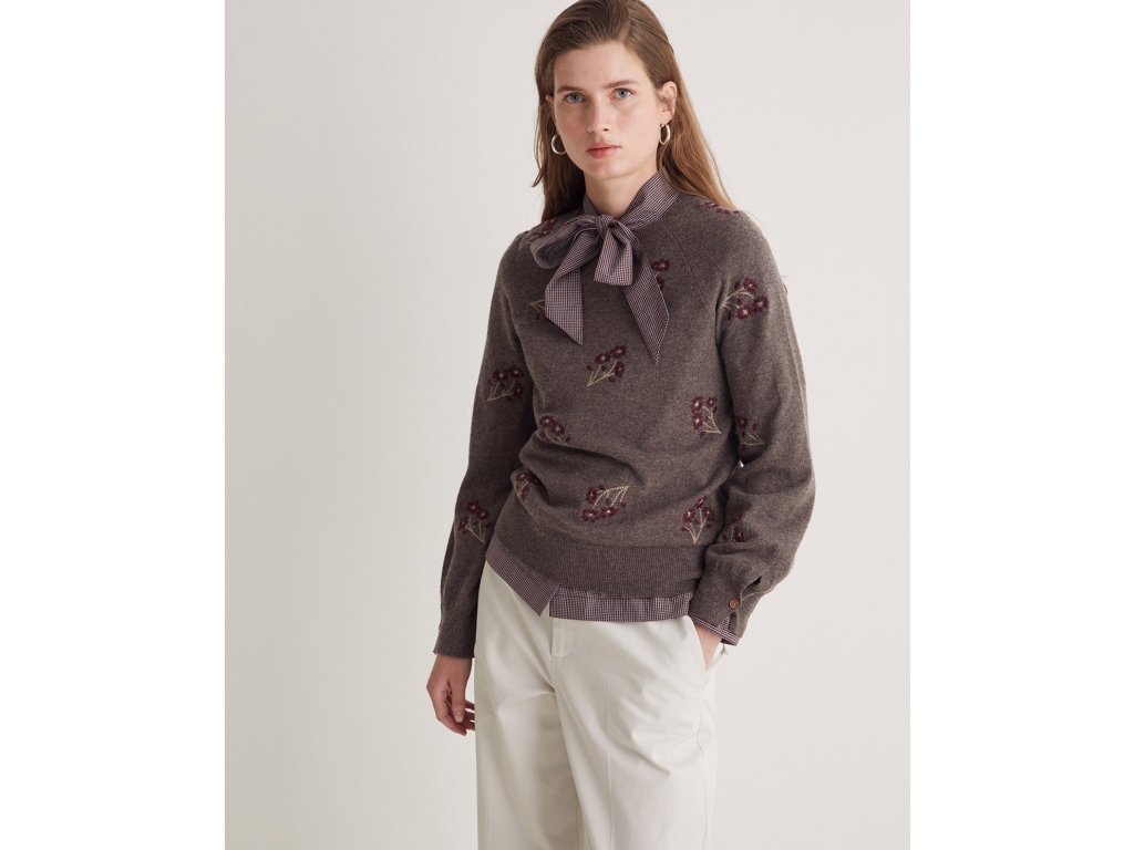 Měkký svetr Yerse s jemnou květinovou výšivkou dodá vašemu outfitu ženskost i originalitu. Má kulatý výstřih, raglánové rukávy a pohodlný volnější střih, který se příjemně nosí po celý den. Detaily v podobě knoflíčků na rukávech podtrhují jeho ležérní eleganci. Skvěle se kombinuje s džínami, sukní nebo elegantními kalhotami – pro všední den i volnější pracovní styl.