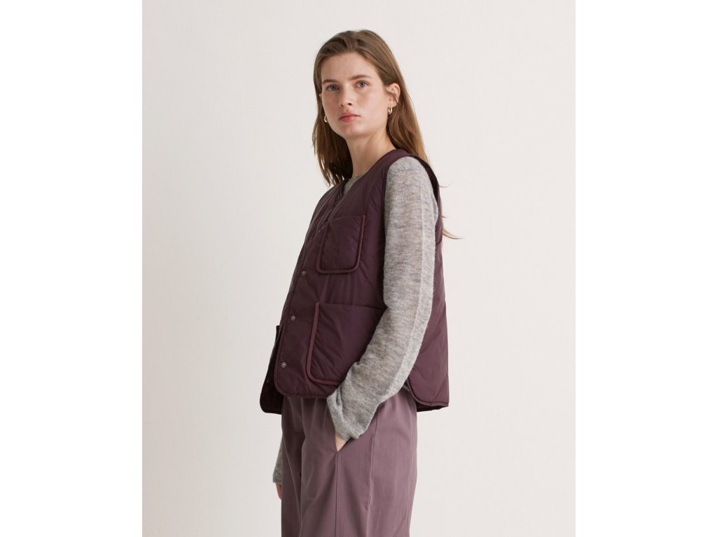 Stylová vínová vesta Yerse, která spojuje funkčnost, moderní vzhled a udržitelné zpracování. Je lehká, pohodlná a ideální pro přechodné období — skvěle se hodí jak přes mikinu, tak jako samostatná vrstva při mírnějším počasí.
